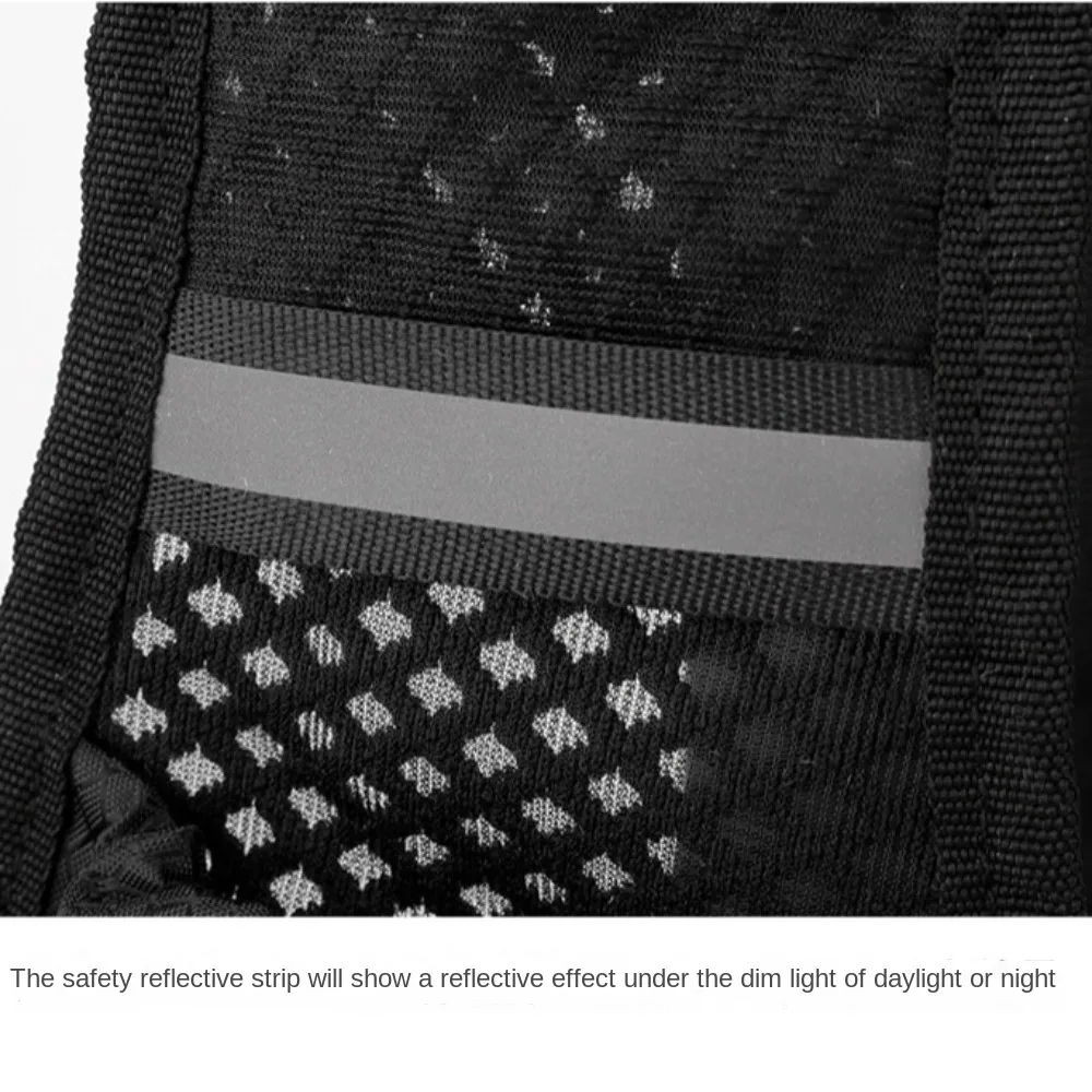 5. Tiras de seguridad reflectantes: diseñada con tiras reflectantes, esta mochila de ciclismo liviana mejora la visibilidad en condiciones de poca luz. Ya sea de día o de noche, los elementos reflectantes mejoran la seguridad, lo que lo hace ideal para actividades nocturnas y garantizan que se mantenga visto.