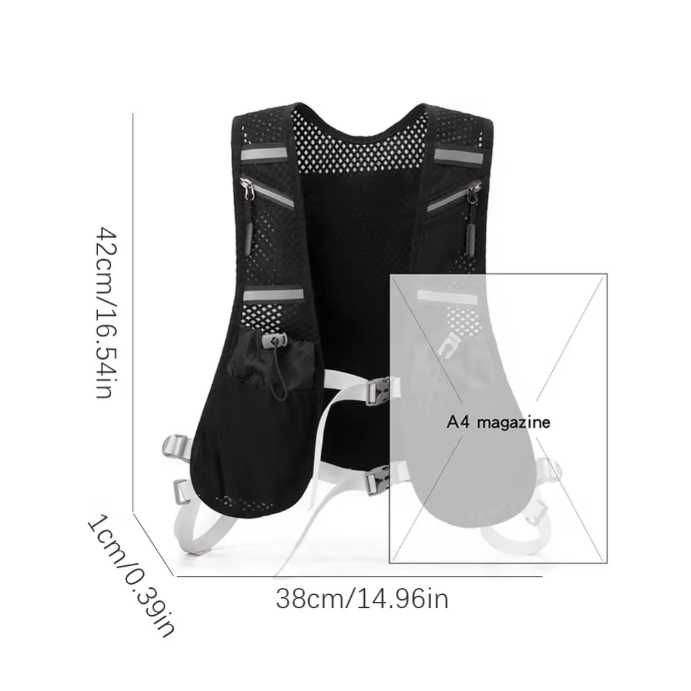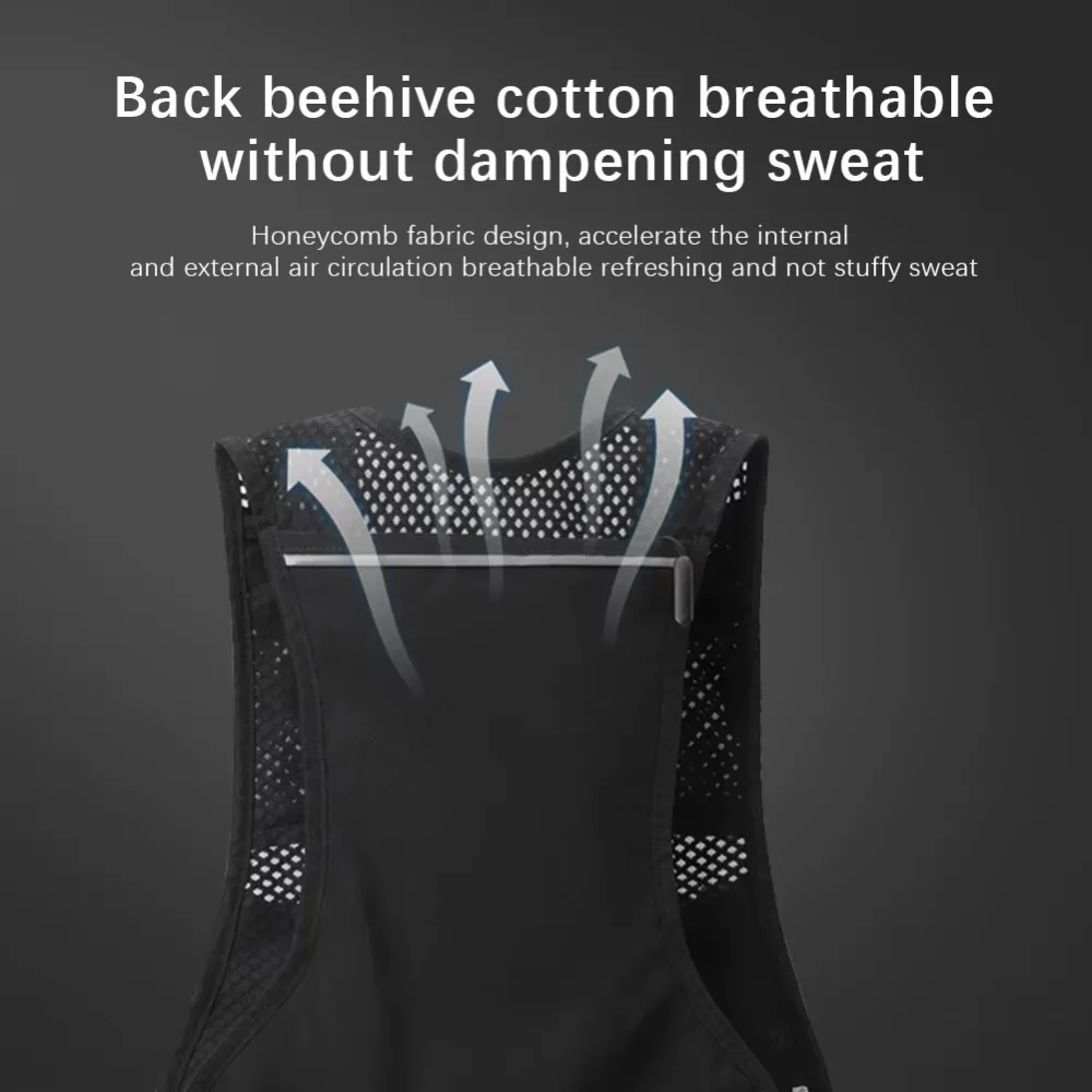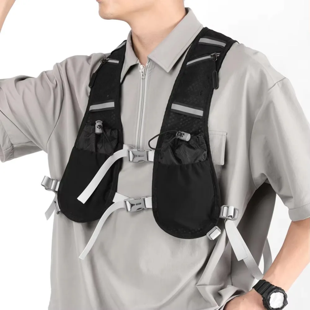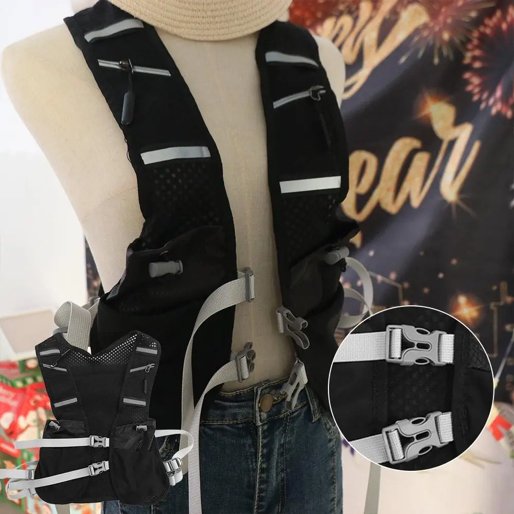 3. Convenient Vest-Style Zipper: This reflective hydration vest features a vest-style zipper design for easy on and off. No need to open buckles; you can quickly wear or remove the backpack, making it highly convenient for fast-paced activities.