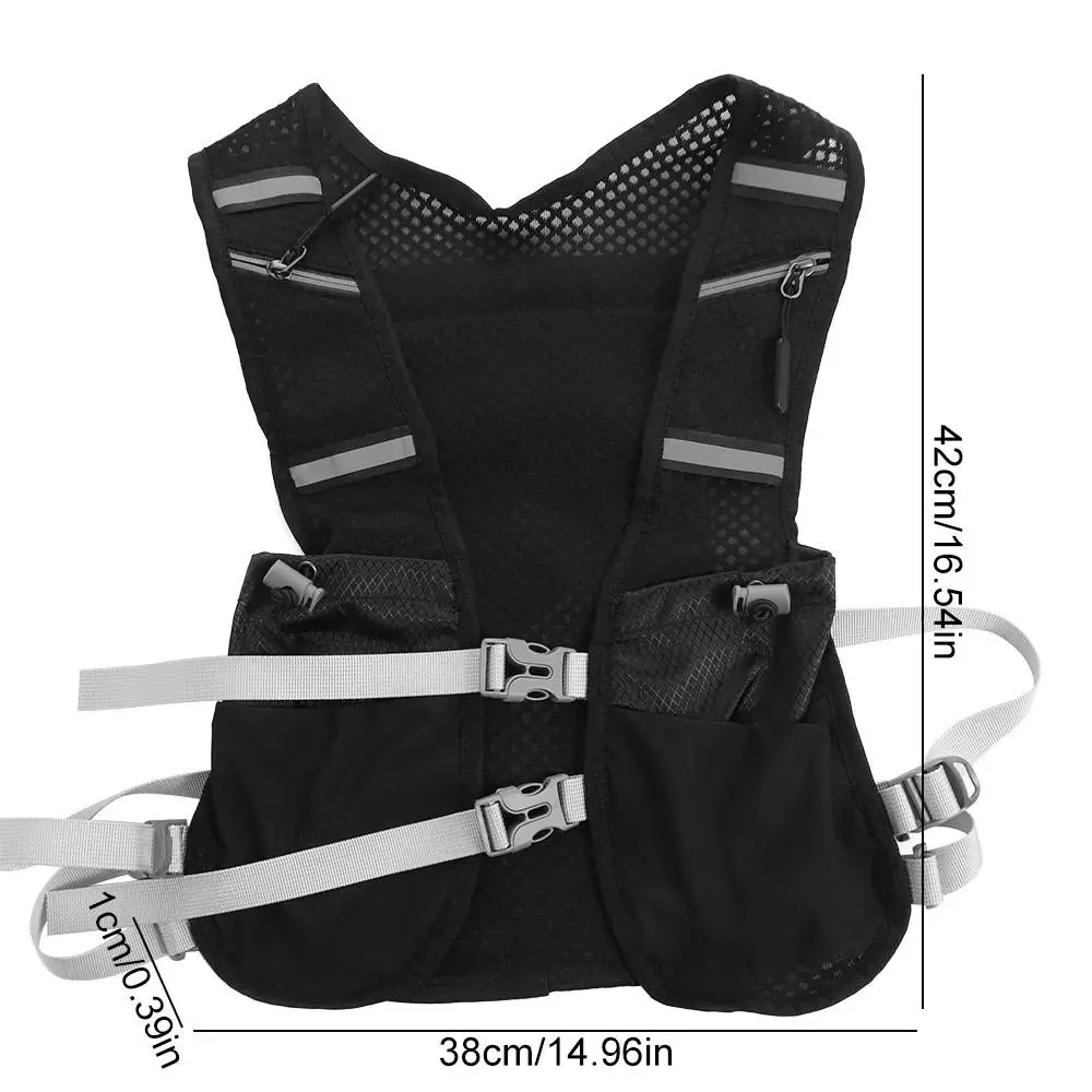 4.Amplio almacenamiento con múltiples bolsillos: equipado con múltiples bolsillos, este paquete de chaleco de senderismo ofrece un amplio espacio de almacenamiento para sus elementos esenciales.Almacene fácilmente varios tamaños de teléfonos y artículos personales, con espacio dedicado en el hombro para una botella de agua deportiva, asegurando que todo lo que necesita esté al alcance.