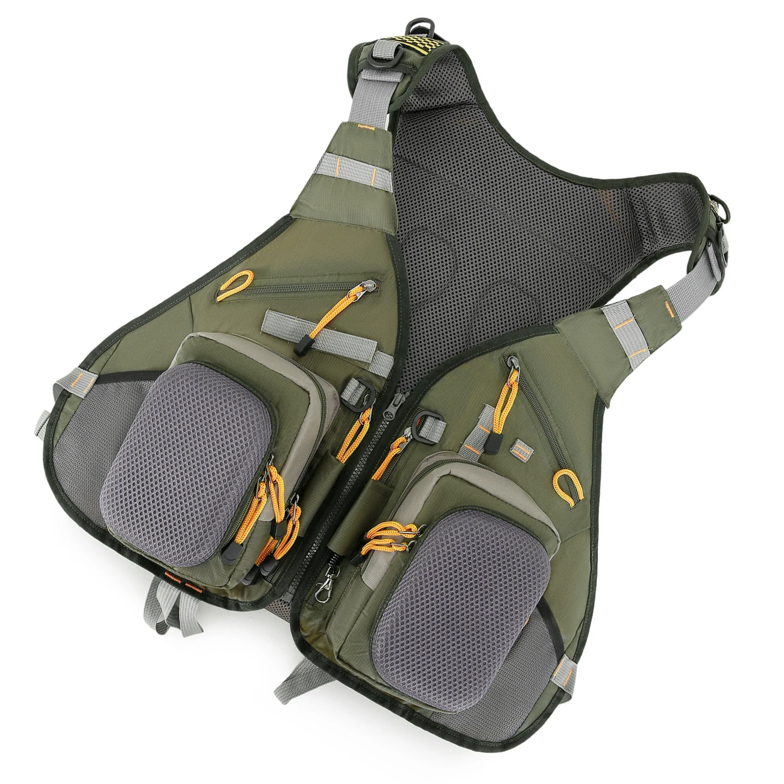 4.Práctico diseño de múltiples bolsillos: este chaleco de pesca ofrece un práctico diseño de 16 bolsillos para mantener su equipo organizado y fácilmente accesible en todo momento.