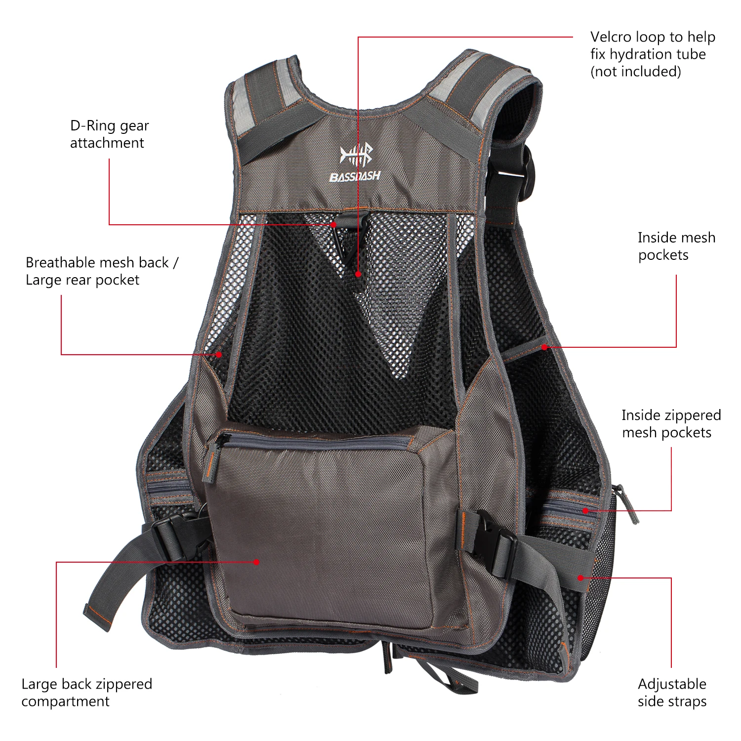 Sistema de suspensión ajustable: correas ajustables para hombros y cintura, permite un ajuste personalizadoEl forro interior acolchado de malla de aire en la parte superior de la espalda y los hombros brinda lo último en comodidad y transpirabilidad.Diseño de 20 bolsillos para mantener todo sus aparejos organizados: múltiples bolsillos de almacenamiento interiores y exteriores que incluyen 15 bolsillos con cremallera suave;Estaciones de trabajo con doble cremallera frontal y velcro para fijar los parches antimoscas extraíbles;Bolsillo de almacenamiento trasero de malla compatible con hidrataciónCon un uso alternativo de cierre de hebilla de liberación rápida y cierre de cremallera dobleOtras características incluyen un accesorio de engranaje con anillo en D en la parte posterior, anillos en D externos para accesorios en el pecho, una estación de acoplamiento para dobladillos y emisores de web Molle y bucles para sujetar varillas.