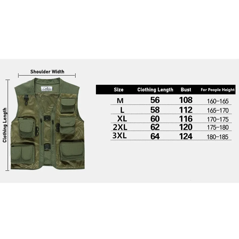 1. El Chaleco de pesca está hecho de tela de poliéster de alta calidad, la malla transpirable le permite ventilar bien y secarse rápidamente, lo que lo mantiene cómodo en actividades al aire libre. Ideal para todas las estaciones.