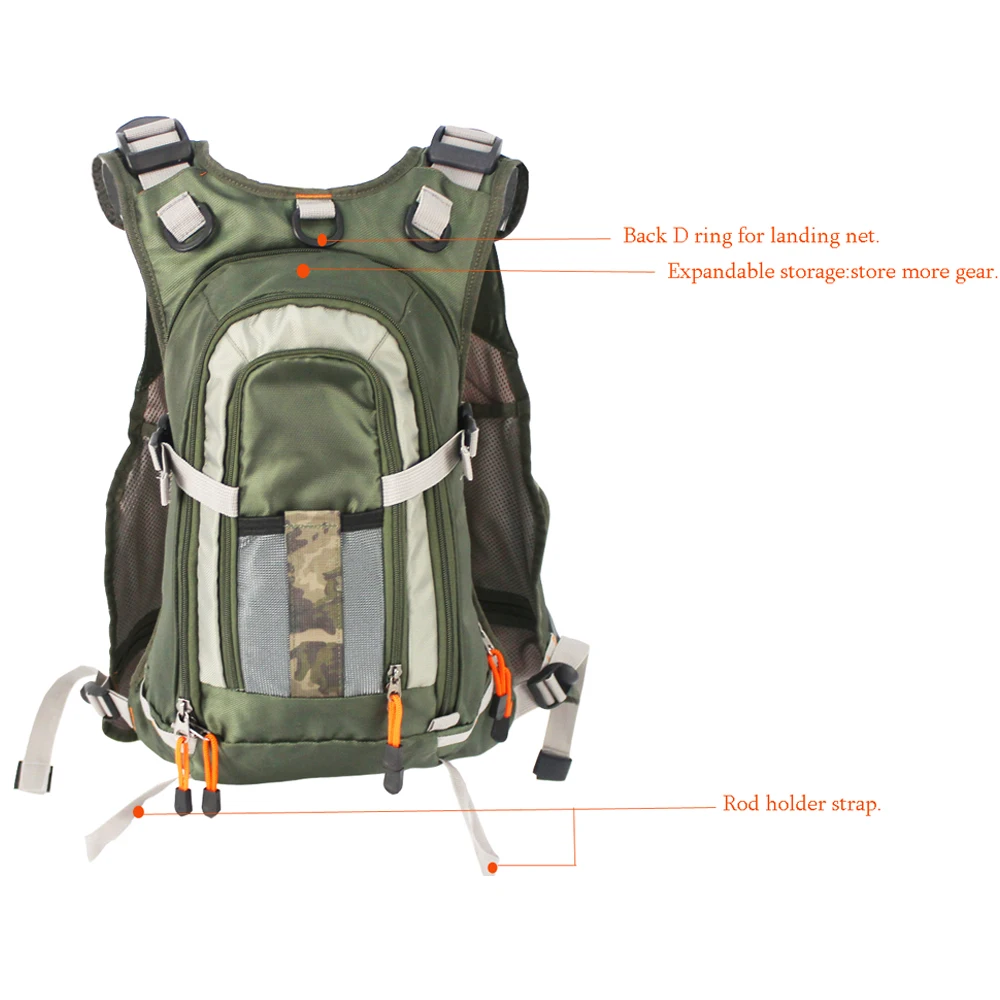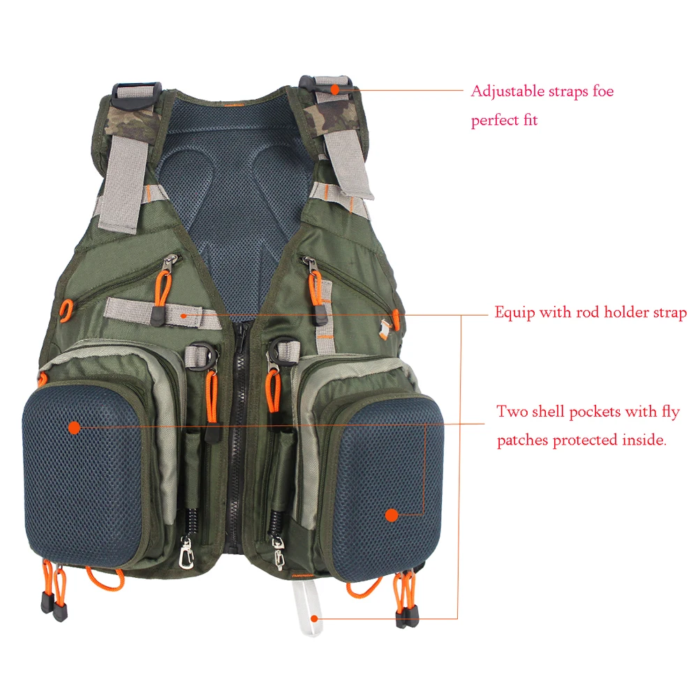 Ideal para todo tipo de pesca combinando un chaleco de pesca tradicional y una mochila versátil para proporcionar todas las funciones que necesitará en cualquier viaje de pesca. Esta mochila de pesca con mosca está equipada con: 2 compartimentos con mosca de concha dura, dos bolsillos moldeados principales para sujetar y proteger tus moscas. Muchos bolsillos para guardar muchos equipos y mantenerlo protegido y organizado. Y mochila con tres compartimentos con cremallera principal expansible para almacenar equipo de pesca. Múltiples compartimentos con cremallera resistentes proporcionan múltiples funciones. Este chaleco de pesca con mosca le permite tener sus herramientas a su alcance sin tener que cavar a través de bolsillos o cajas de aparejos con 2 ataduras giratorias retráctiles perfectas para alicates o cortaúñas y un soporte de caña integrado para que usted ¡Puede trabajar en su equipo con dos manos libres! Nylon ligero resistente al agua combinado con malla transpirable le permitirá almacenar de forma segura su equipo de pesca, cartera, teléfono móvil y llaves de coche, todo en un paquete de chaleco de pesca con mosca cómodo y fácil de usar. Ajustable de talla única, con material suave acolchado y múltiples puntos para el ajuste, el respaldo de malla te hace sentir más cómodo,. No es demasiado voluminoso o pesado, el diseño de las correas proporciona un soporte adicional. Esta mochila de pesca con mosca se ajusta muy bien y te mantendrá cómodo durante todos tus viajes de pesca. (Talla única).