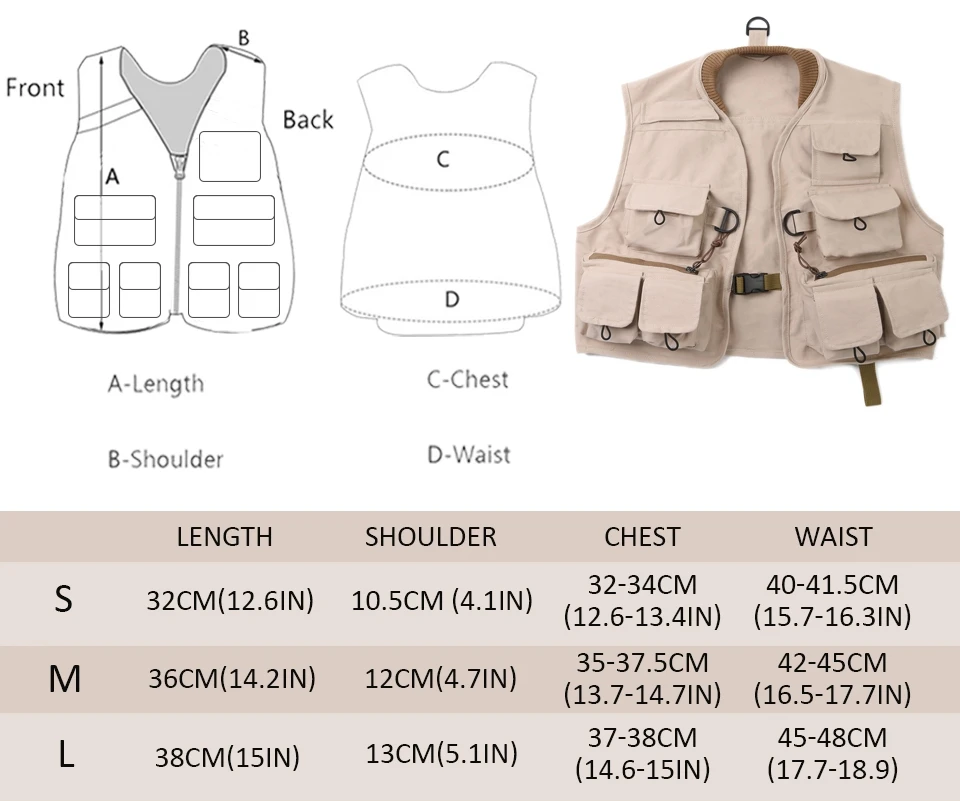 Diseño de 12 bolsillos para guardar lo que necesita y anillos en D para una fácil fijación y mantener los engranajes cerca.Bolsillos con cierre de velcro para guardar los equipos y snacks.Bolsillo trasero profundo con cremallera para artículos grandes.