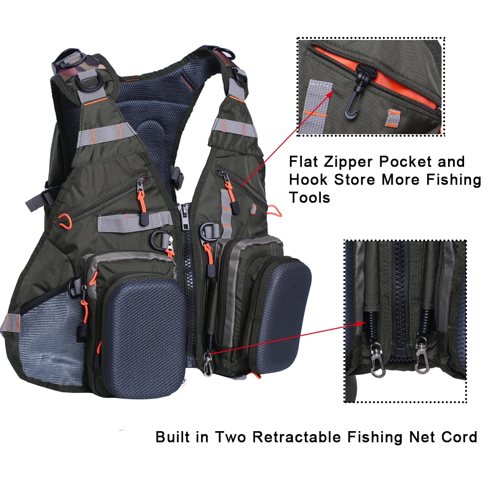【Ligero y cómodo】¡ este chaleco de pesca combina un chaleco de pesca tradicional y una mochila de pesca para proporcionar todas las funciones que necesitará en cualquier viaje de pesca! Paquete de chaleco de pesca de trucha de solo 33oz de peso, está hecho de tela transpirable ligera. La parte posterior de la malla permite que el aire fluya libremente para que pueda mantenerse fresco y seco. Especialmente en climas cálidos.