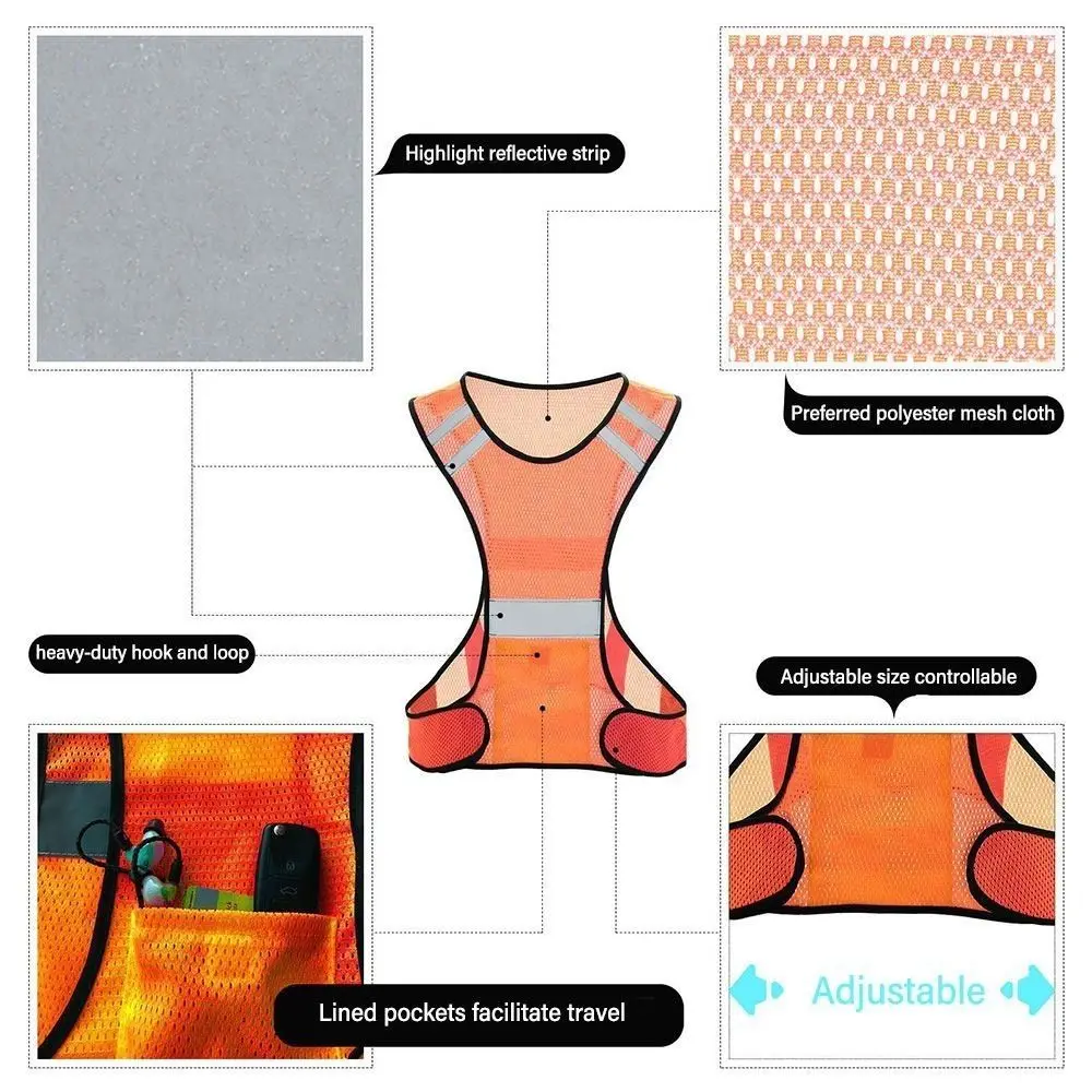 Nuevo y de alta calidad Nombre: chaleco reflectante para correr Color: naranja/Verde/Negro/Rosa rojo Tamaño: como se muestra en las imágenes Cantidad: 1 Uds. Material: POLIÉSTER + correas elásticas Peso: 75g eatures: 1. Chaleco de malla transpirable: Este chaleco reflectante ligero y transpirable cuenta con correas ajustables para un ajuste cómodo. La cintura está diseñada con cinta adhesiva, lo que facilita su uso. 2. Tiras reflectantes de alta visibilidad: con tiras reflectantes en los hombros, los lados de la cintura y la parte delantera/trasera, este chaleco de seguridad para correr proporciona una reflexión de 360 grados, asegurando la visibilidad y sirviendo como un recordatorio de advertencia. 3. Encuadernación de bordes duradera: el chaleco reflectante para exteriores está fabricado con encuadernación de bordes gruesos y resistentes para evitar el deshilachado. El proceso de costura es uniforme y meticuloso, lo que garantiza durabilidad y longevidad. 4. Perfecto para actividades nocturnas al aire libre: ya sea correr de noche, servicio al aire libre o trabajo laboral, este chaleco reflectante de seguridad ofrece señales de advertencia reflectantes, mejorando la seguridad en condiciones de poca luz. 5. Incluye pulseras reflectantes: esta banda reflectante viene con bandas elásticas y tiras reflectantes, hechas de materiales duraderos. Las bandas reflectantes se pueden usar en los brazos, muñecas, tobillos y piernas, proporcionando una tensión ajustable y un tamaño adecuado para todas las personas. El paquete incluye: 1 chaleco reflectante para correr. Aviso: 1. Permita una ligera diferencia de 1-3 cm (0,39-1,18 pulgadas) debido a la medición manual. 2. Permita una ligera diferencia de color. Debido a los diferentes monitores y luz, la imagen