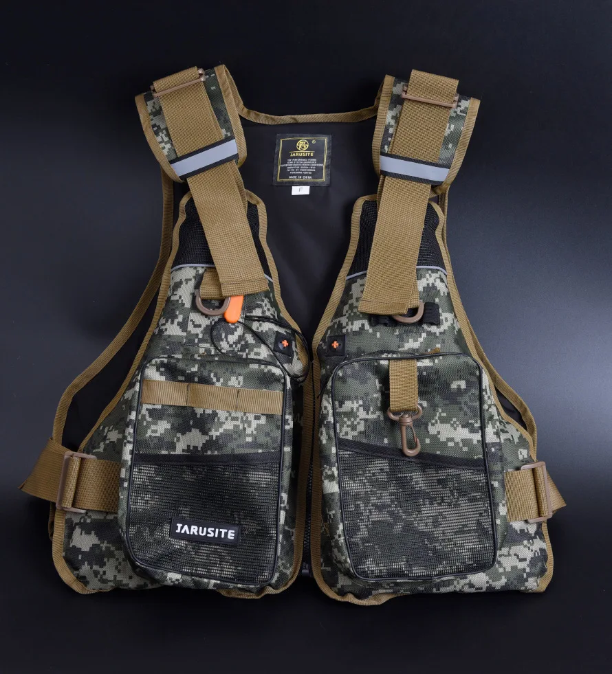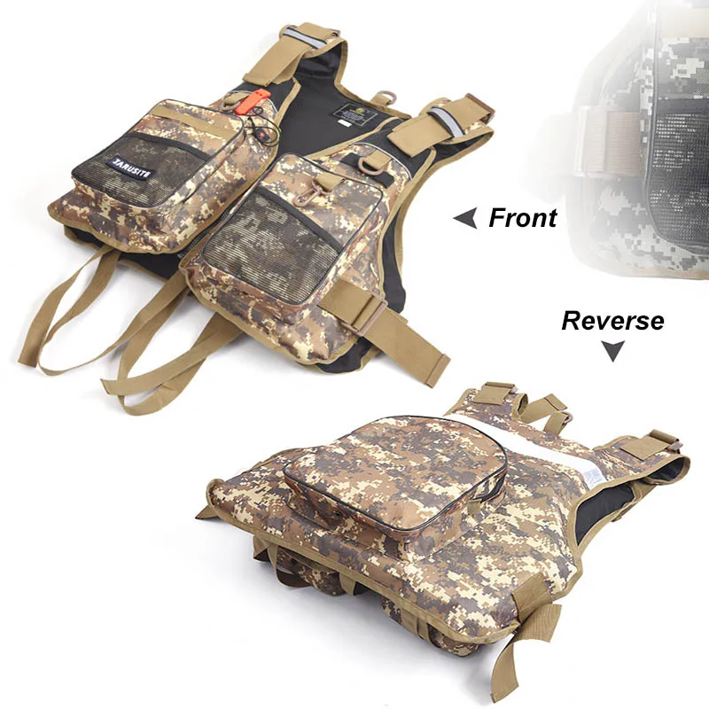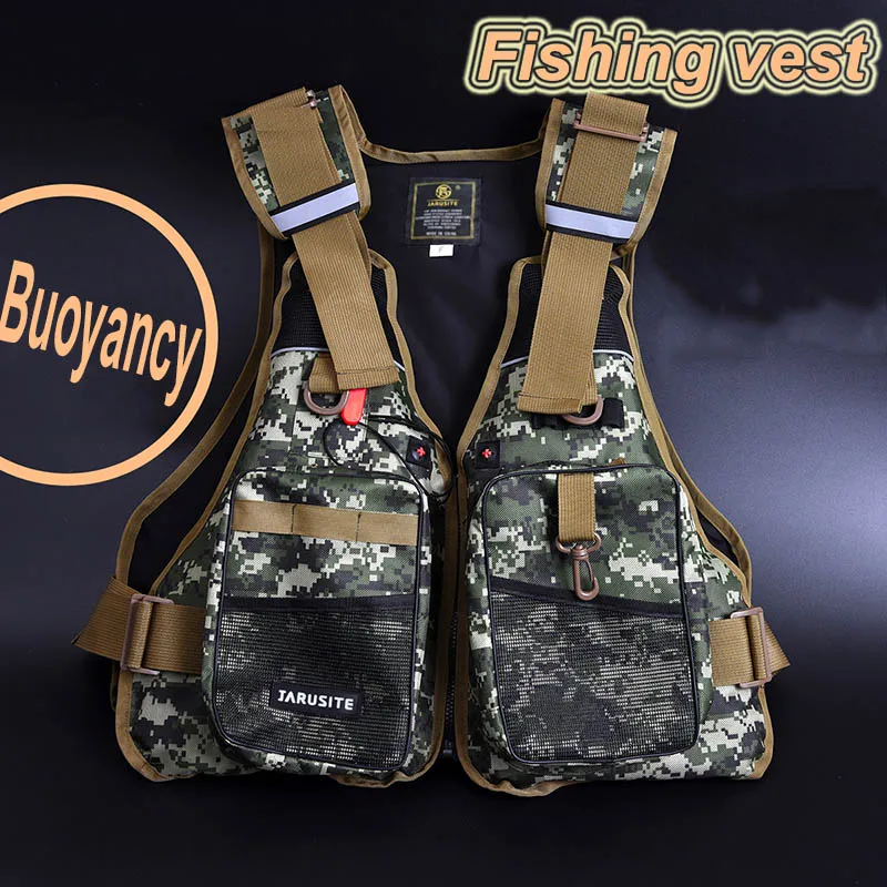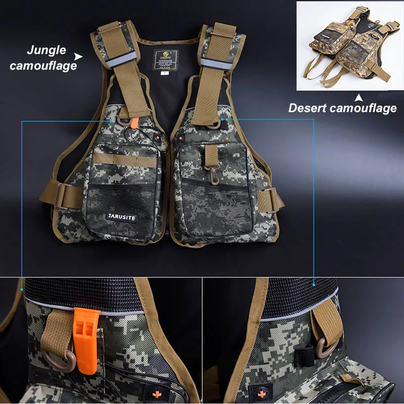 Chaleco salvavidas de camuflaje al aire libre, chaleco de flotabilidad, chaleco salvavidas de pesca con señuelo, traje de pesca con mosca, Chaleco de equipo de pesca