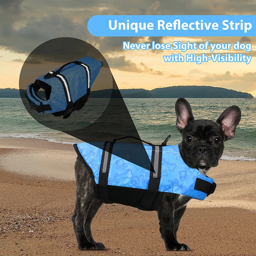 Las rayas reflectantes de alta visibilidad pueden mejorar la visibilidad en el agua o en condiciones de poca luz y hacer que encuentre rápidamente a su perro de un vistazo.
