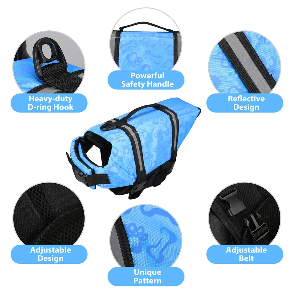 REFLECTANTE Y SEGURIDAD: el chaleco salvavidas para perros Yeahmart viene con un diseño de colores brillantes y rayas reflectantes de alta visibilidad, el diseño puede mejorar la visibilidad en agua o condiciones de poca luz, hacer que encuentre rápidamente a su perro de un vistazo, el estilo de moda hace que tu perro se convierta en la estrella de cualquier deporte acuático.
