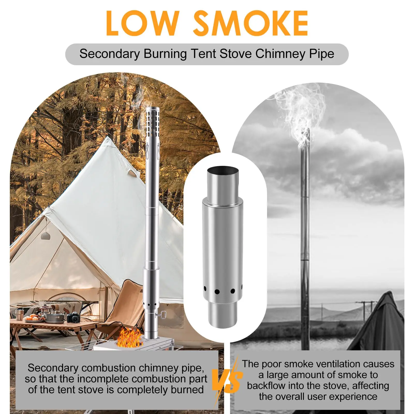 Con un diámetro exterior de 55 mm (2,17"), este tubo de chimenea garantiza que las llamas quemen de manera eficiente en el interior, minimizando la producción de humo.Disfrute de una experiencia de estufa de camping más limpia y eficiente con emisiones reducidas.