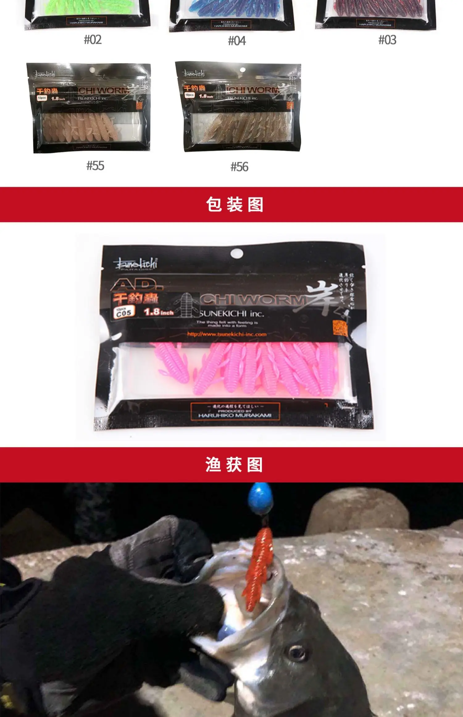 CHANGYOSHI-Cebo blando ISSEI sunekichi LUYA, grupo de pesca sin plomo, mil insectos de pesca a la deriva, polípodes de 1,8 pulgadas, 2,2