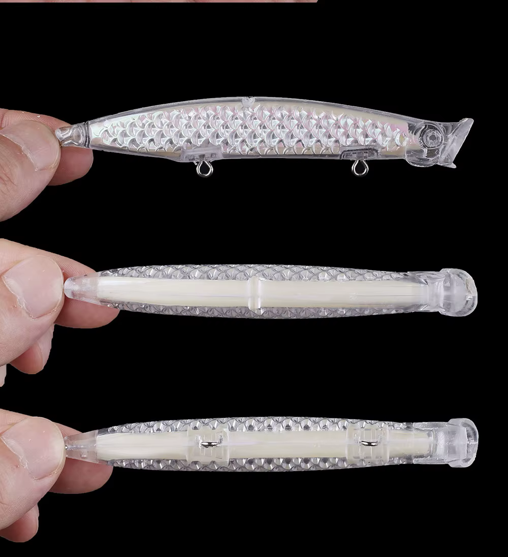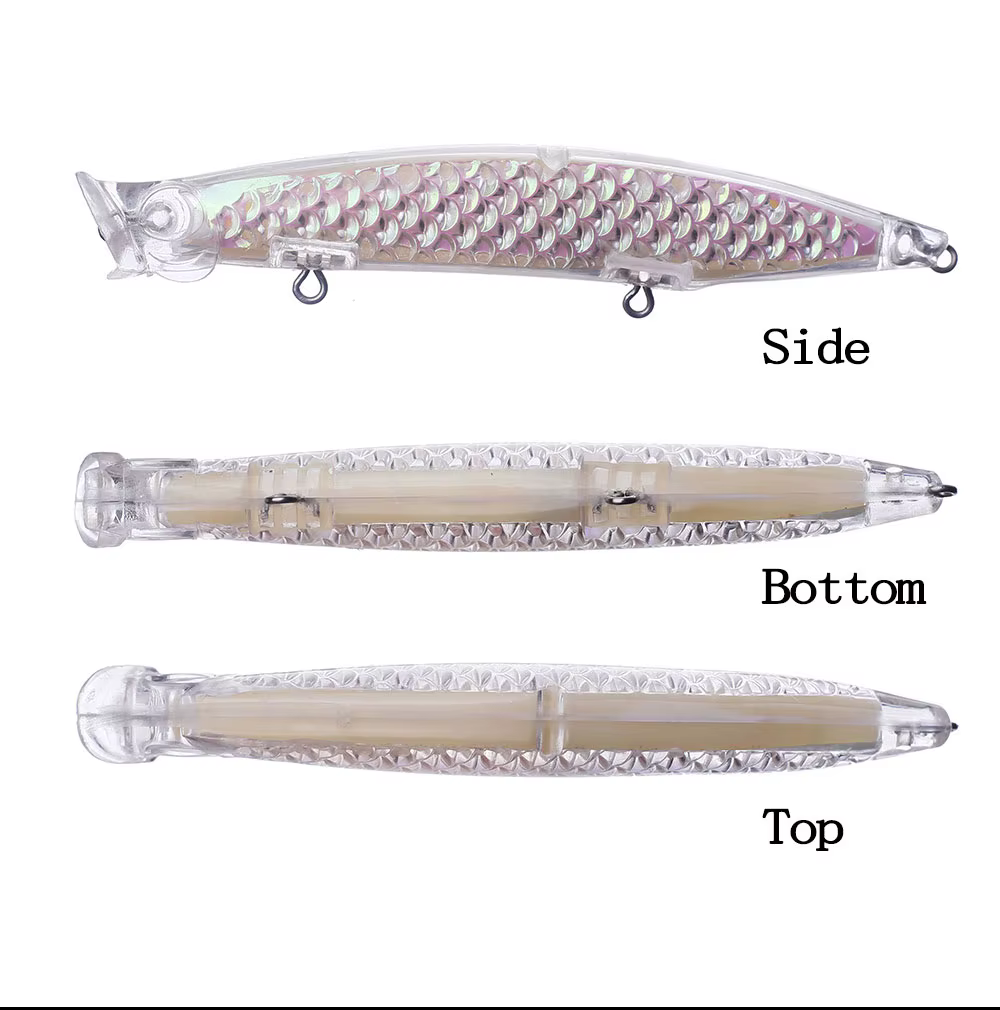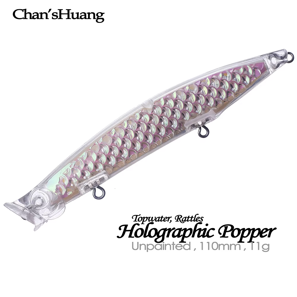Chan'sHuang, 10 Uds., cebo en blanco sin pintar, 110mm, 11g, sonajeros flotantes, lámina holográfica Popper, señuelo de pesca Artificial hecho a mano DIY