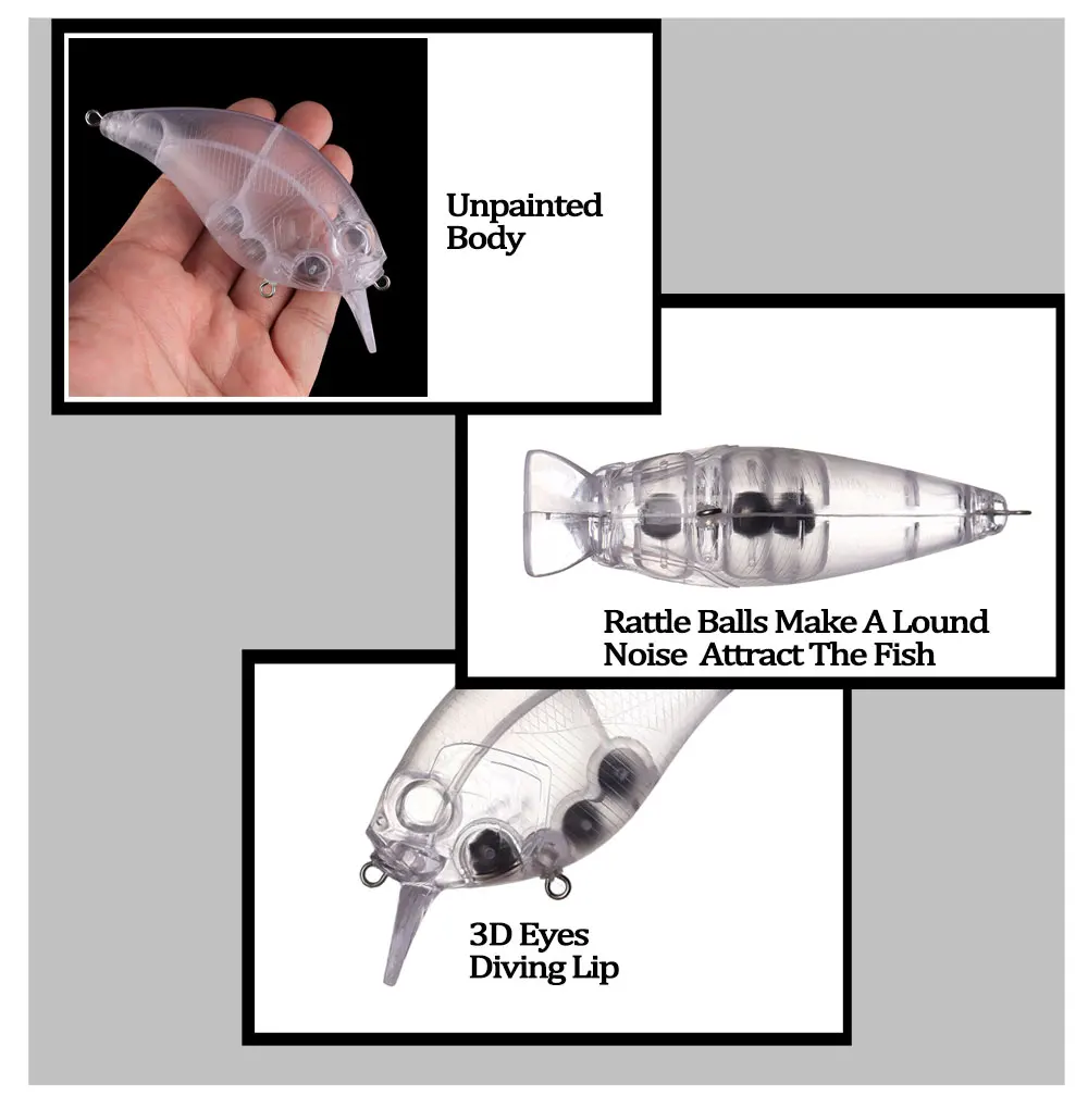 Chan'sHuang, 10 Uds., cebo en blanco sin pintar, 11,5 cm, 42,3g, sonajero flotante, Crankbait para niño grande, señuelo de pesca Artificial hecho a mano