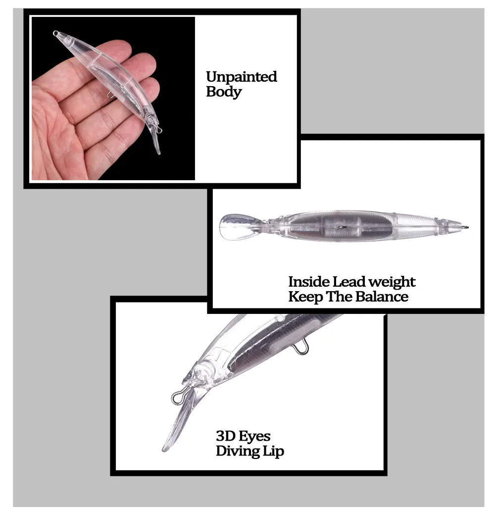 Chan'sHuang 10 Uds cebo en blanco sin pintar 11cm 24g pececillo de buzo poco profundo DIY Señuelos de pesca artificiales