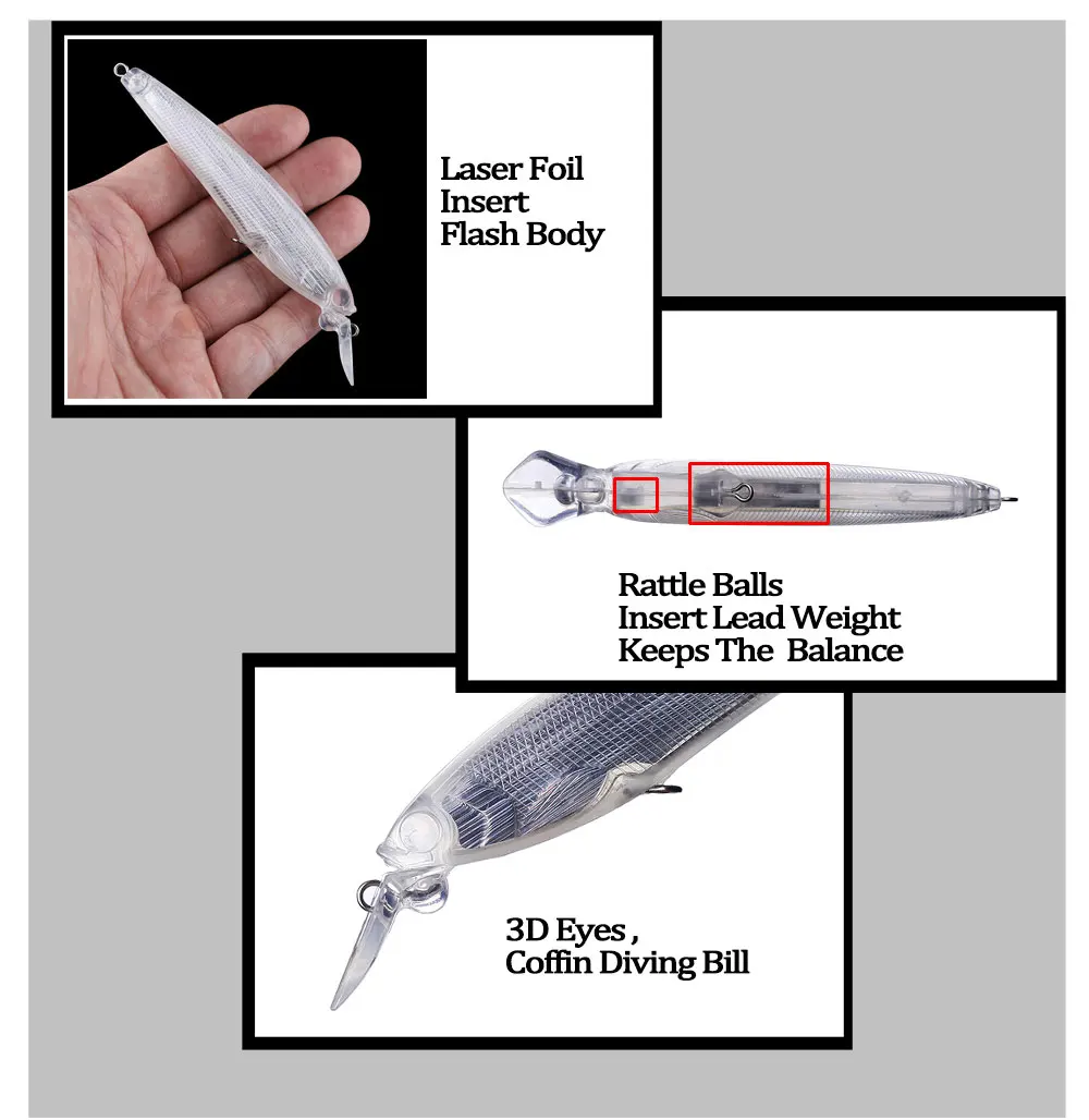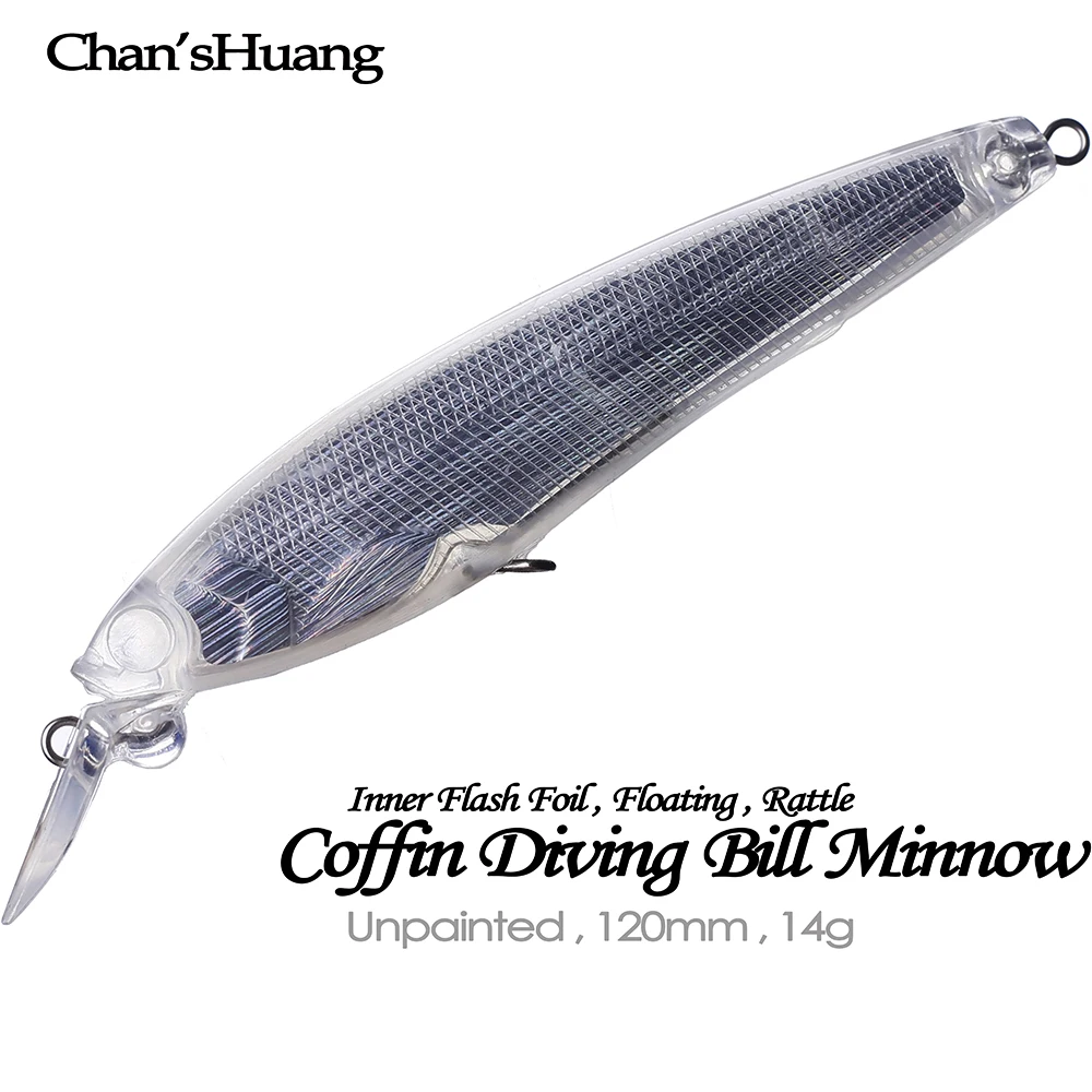 Chan'sHuang, 10 Uds., cebo en blanco sin pintar, 120mm, 14g, ataúd con Flash interior, factura de buceo, pececillo, señuelo de pesca Artificial hecho a mano DIY