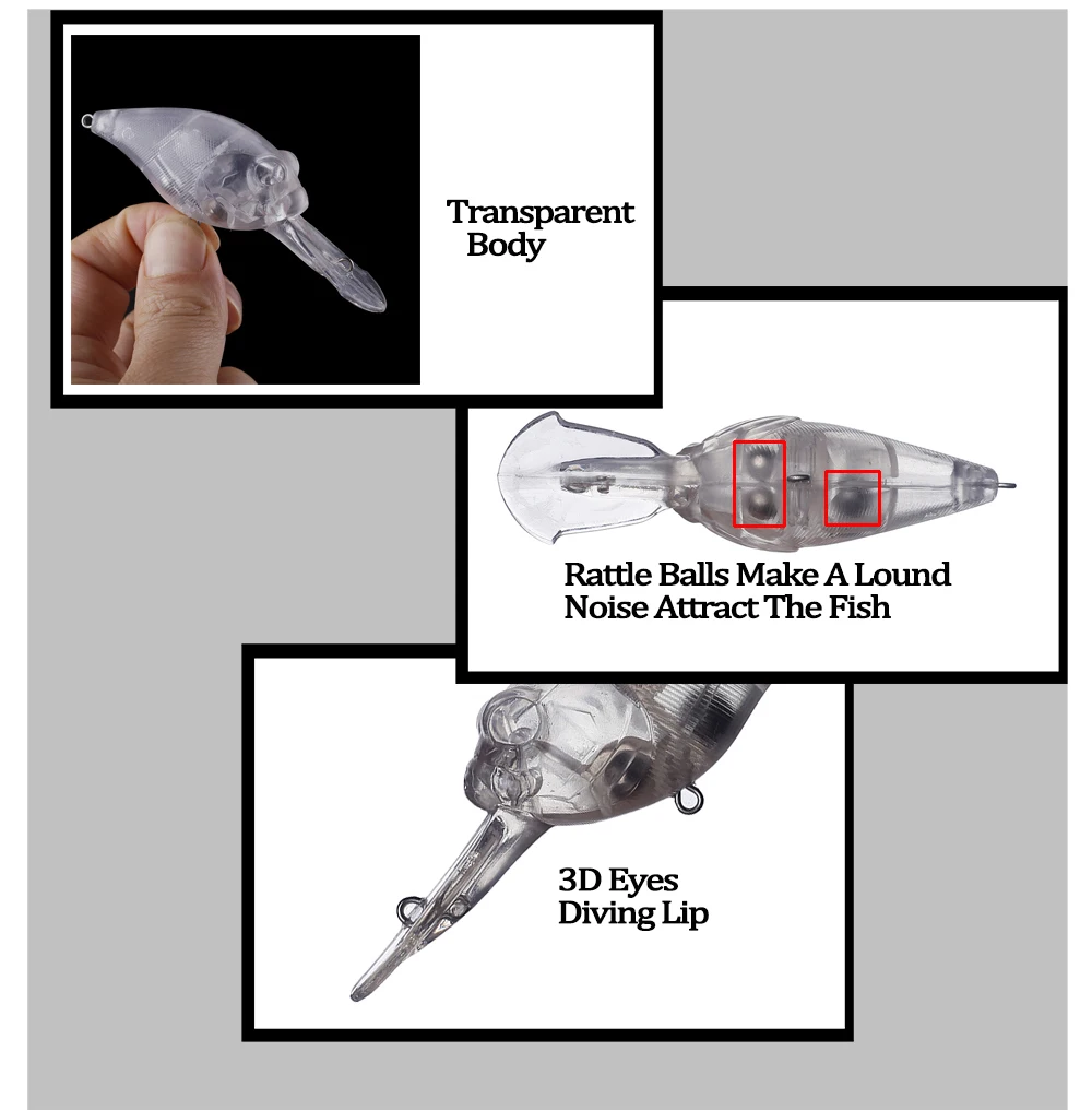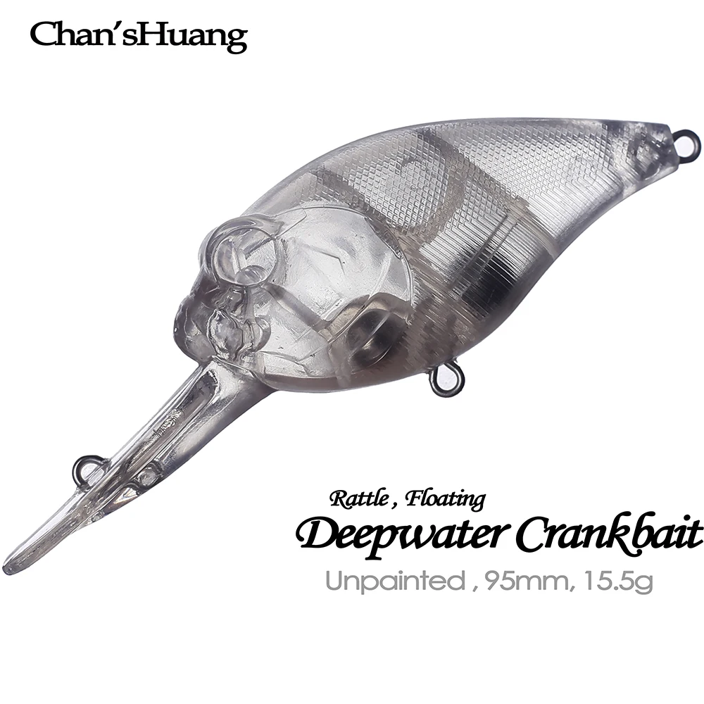 Chan'sHuang, 10 Uds., cebo en blanco sin pintar, 95mm, 15,5g, sonajeros flotantes Crankbait de agua profunda, señuelo de pesca Artificial hecho a mano DIY