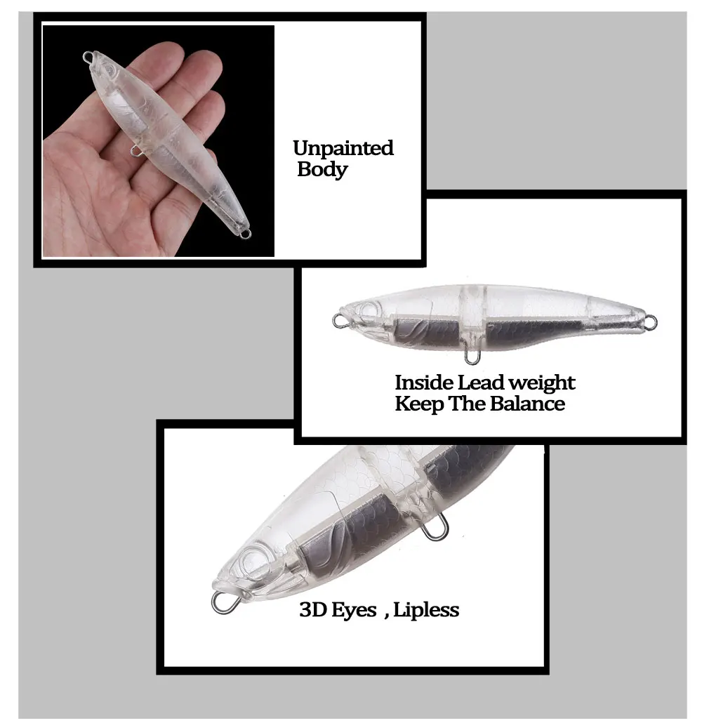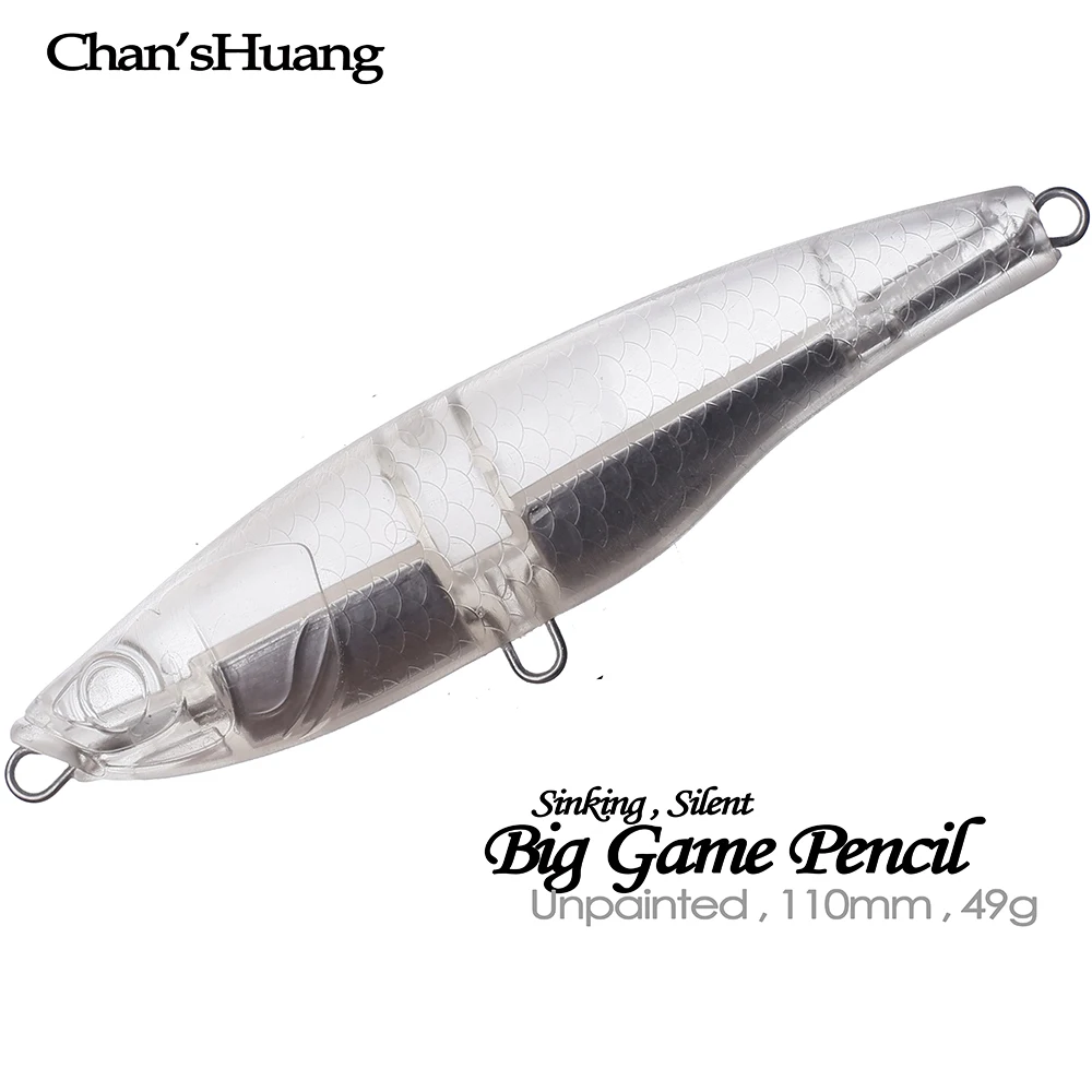 Chan'sHuang-Cebo en blanco sin pintar de 10 piezas, cebo de 110mm y 49g que se hunde, lápiz silencioso de juego grande, pececillo sin Lipless, pesca Artificial hecha a mano