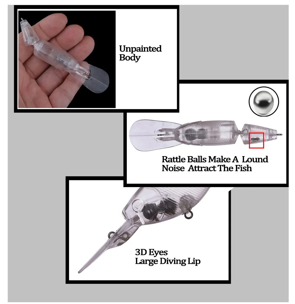 Chan'sHuang 20 Uds. Cebo en blanco sin pintar 10cm 12,8g, pececillo de cola de sonajero, 2 secciones, señuelo de pesca Artificial hecho a mano DIY