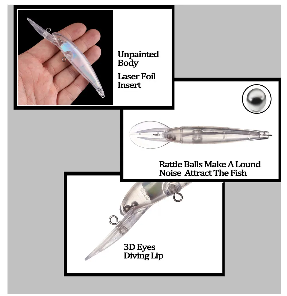 Chan'sHuang 20 piezas cebo en blanco sin pintar 12cm/10,2g sonajero flotante lámina láser Minnow DIY señuelo de pesca Artificial hecho a mano