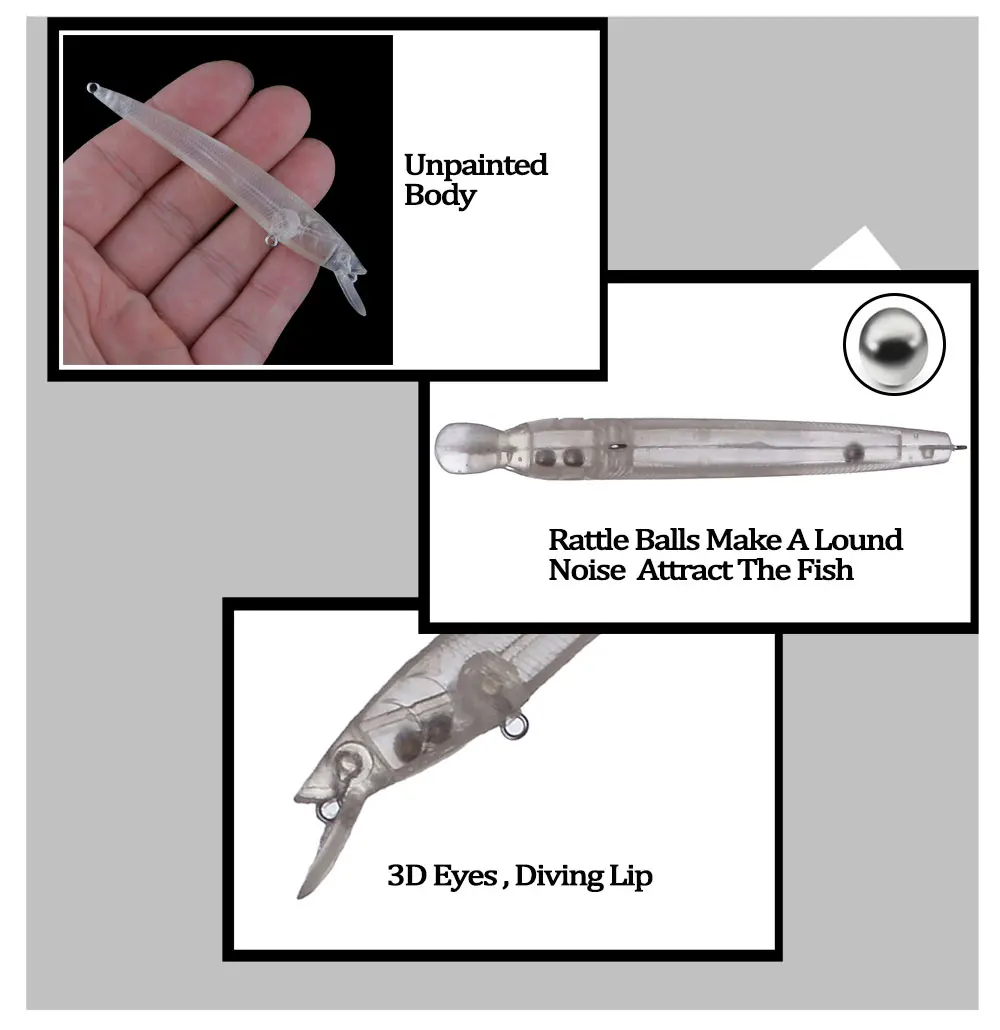 Chan'sHuang 20 Uds cebo en blanco sin pintar 5,5g/95mm sonajero flotante Minnow señuelo de pesca Artificial