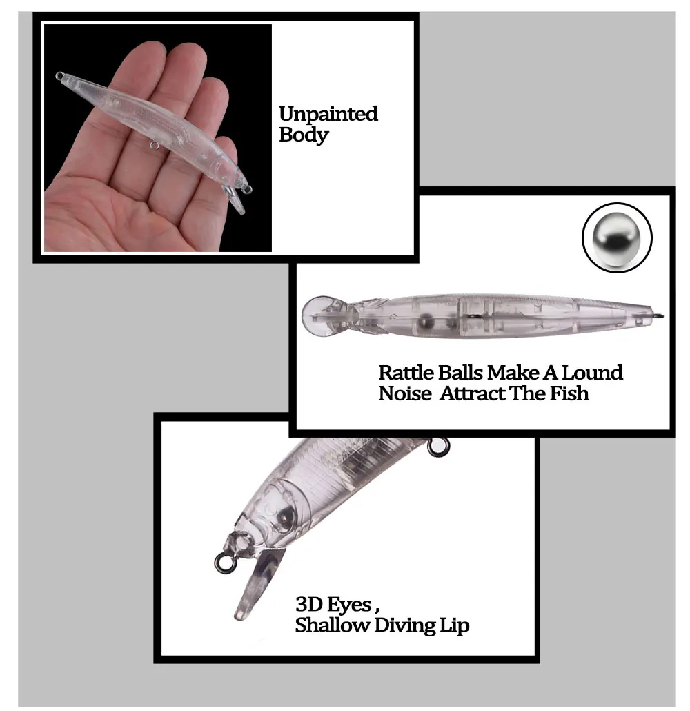 Chan'sHuang 20 piezas cebo en blanco sin pintar 6,5g/100mm pececillo poco profundo sonajero flotante señuelo de pesca Artificial