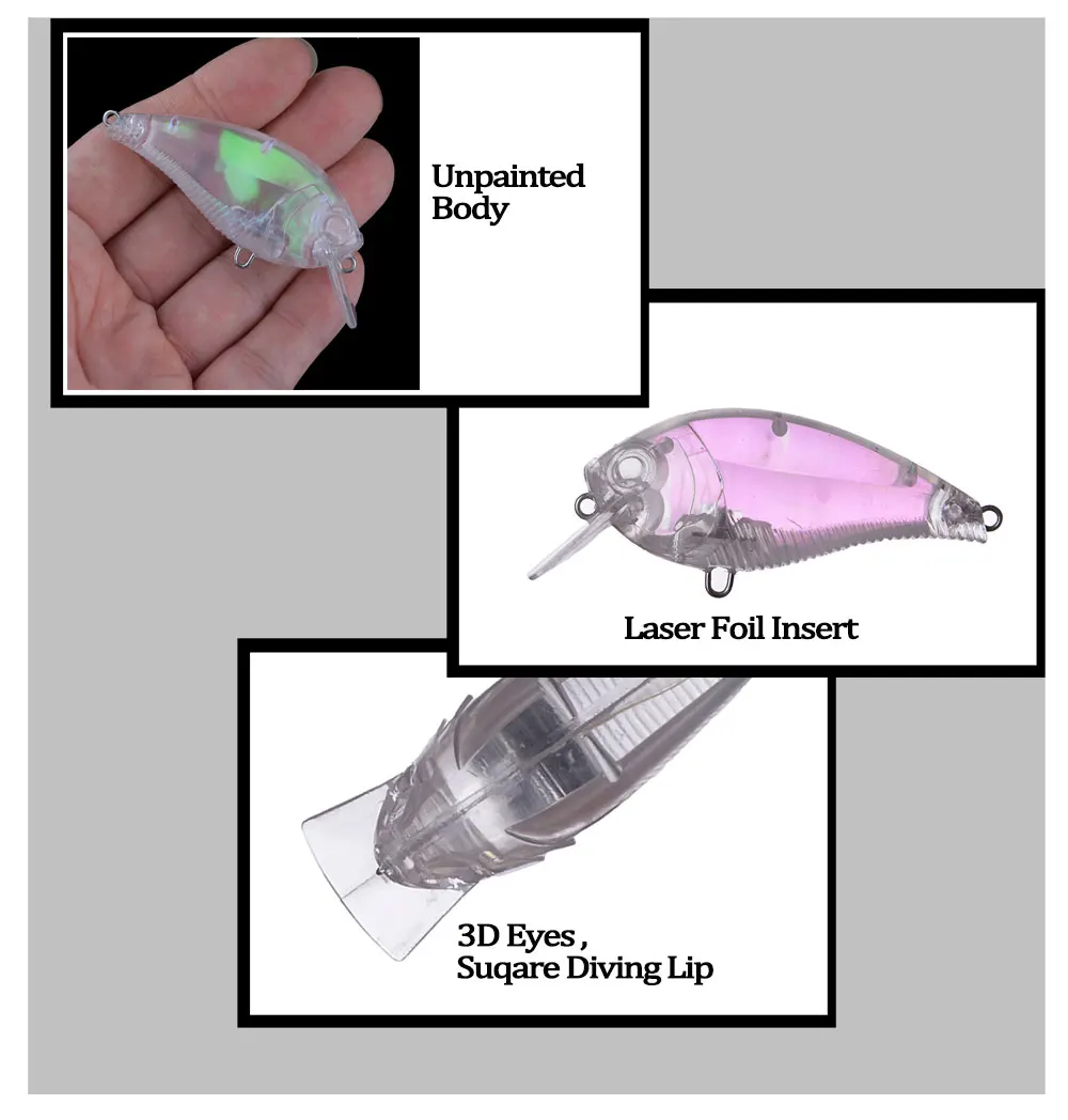 Chan'sHuang 20 Uds cebo en blanco sin pintar 70mm/12g Crankbait láser silencioso DIY señuelos de pesca artificiales
