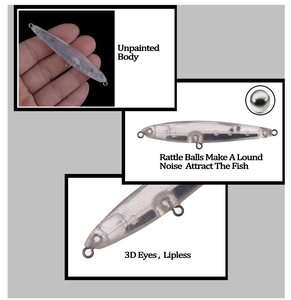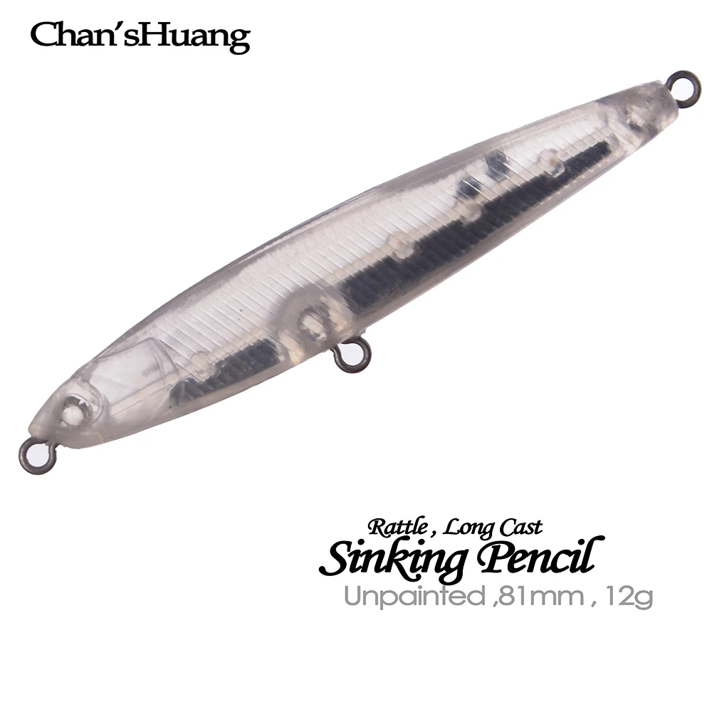 Chan'sHuang 20 piezas cebo en blanco sin pintar 81mm 12g sonajero que se hunde lápiz DIY señuelo de pesca Artificial