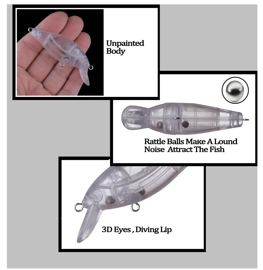 Chan'sHuang 20 Uds. Cebo en blanco sin pintar, sonajero flotante de 9,3g/75mm, Crankbait de buceo, aparejos de señuelo de pesca artificiales hechos a mano DIY