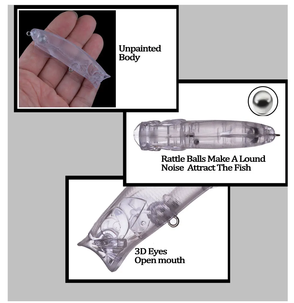 Chan'sHuang 20 Uds. Cebo en blanco sin pintar, 9,5g/80mm, sonajero Popper Topwater, señuelo de pesca Artificial hecho a mano DIY