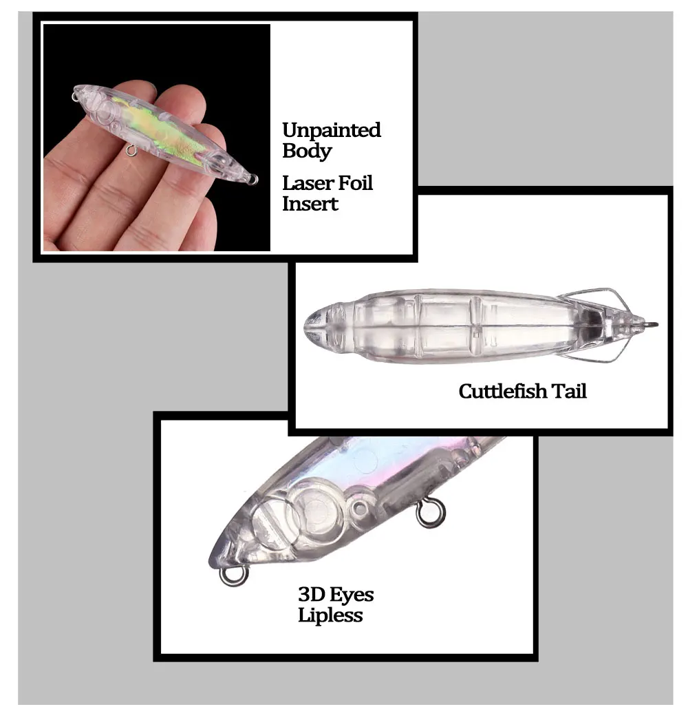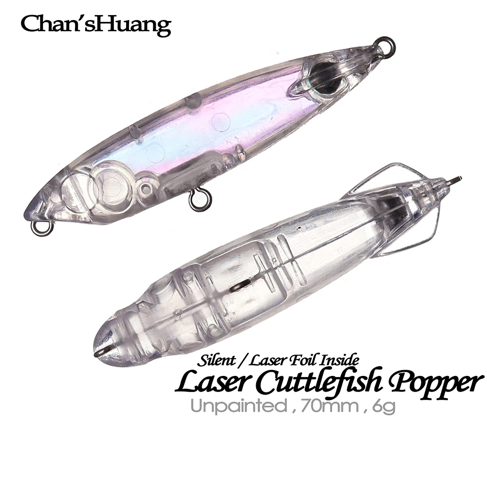 Chan'sHuang 20 piezas cebo en blanco sin pintar 7cm 6g láser sepia Popper lápiz flotante DIY Señuelos de pesca artificiales
