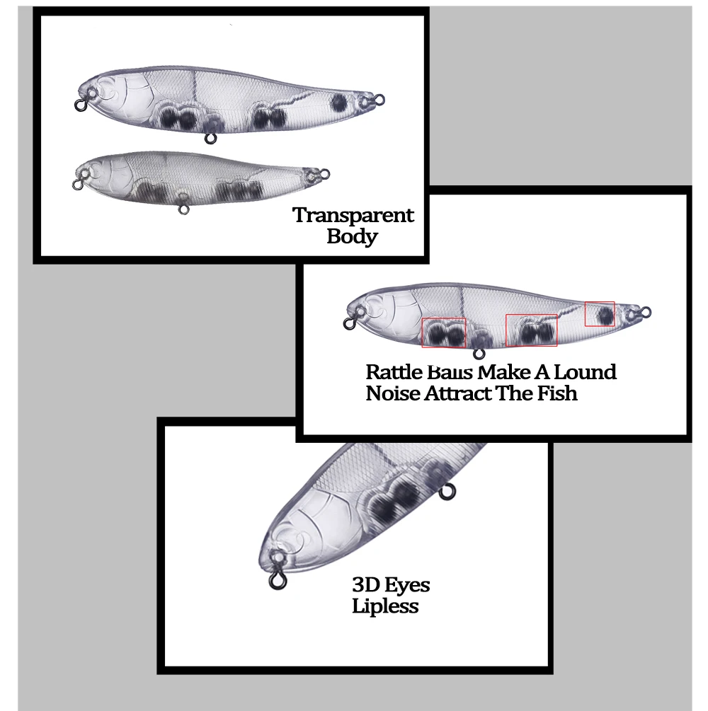 Chan'sHuang, 20 piezas, cebo en blanco sin pintar, Wobblers Topwater, lápiz para caminar al perro, sonajeros flotantes, señuelo de pesca hecho a mano DIY T