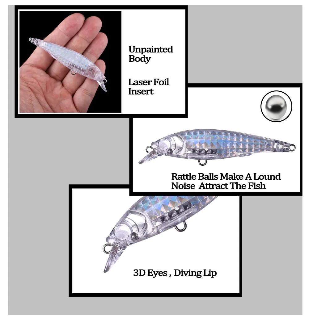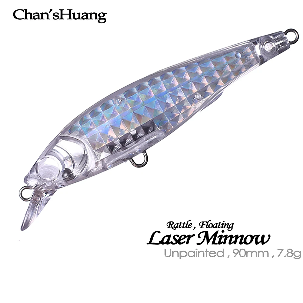 Chan'sHuang 20 piezas cebo holográfico en blanco sin pintar 9cm 7,8g sonajero flotante láser Minnow DIY señuelo de pesca Artificial