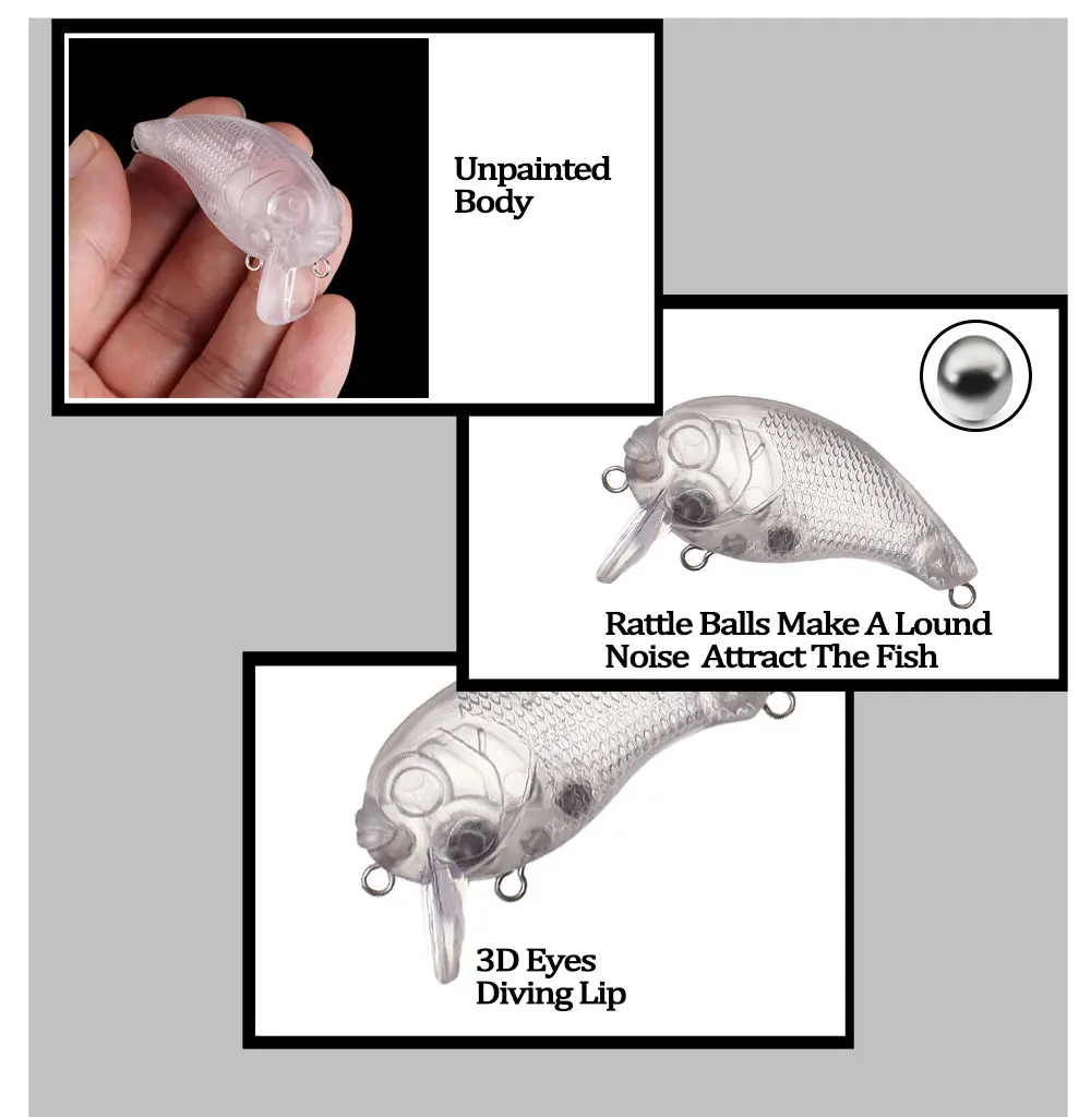 Chan'Shuang 20 piezas cebo de pesca en blanco sin pintar 5,5 cm/7,7g pez payaso Crankbait sonajero flotante DIY Señuelos de pesca artificiales