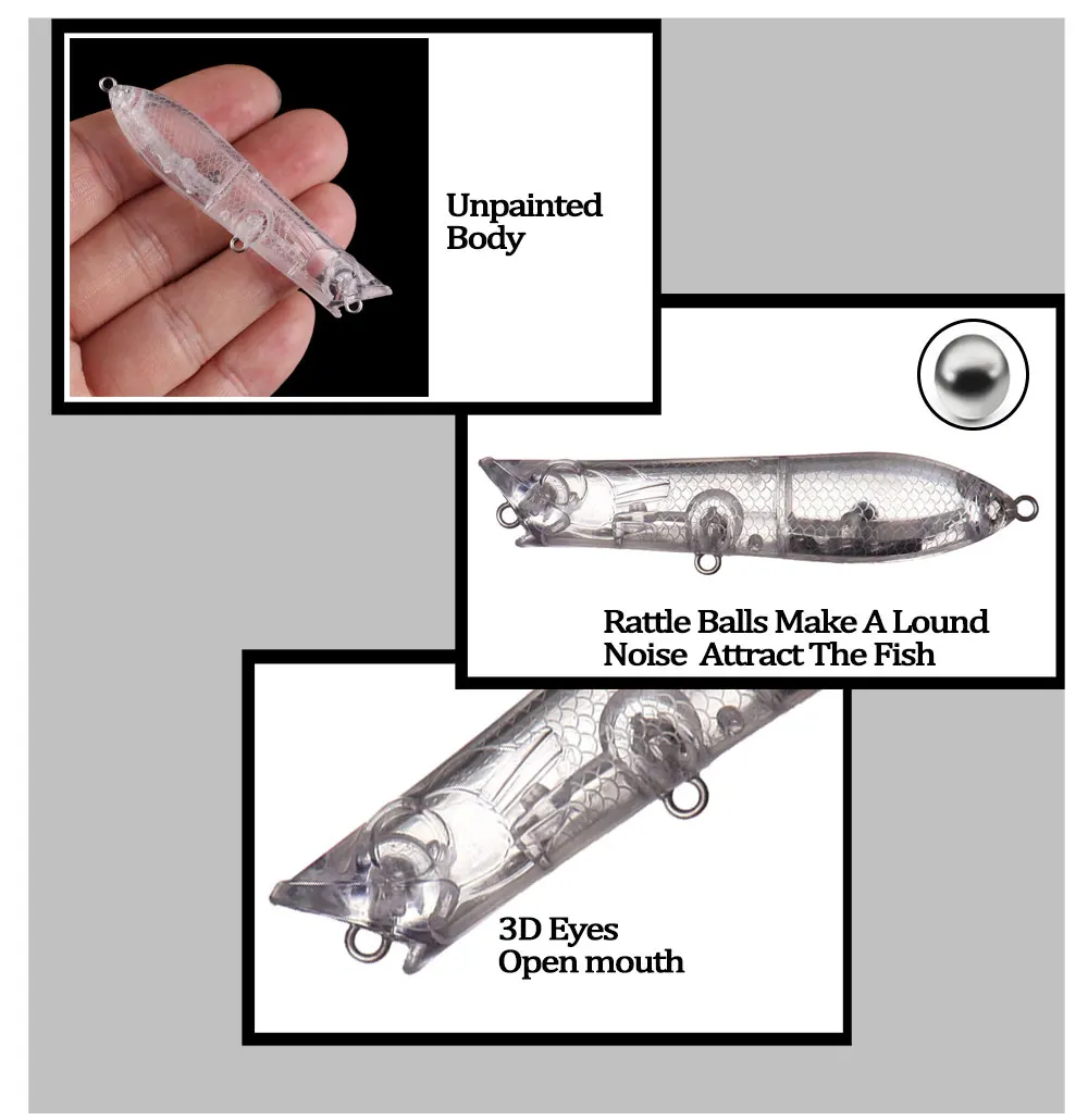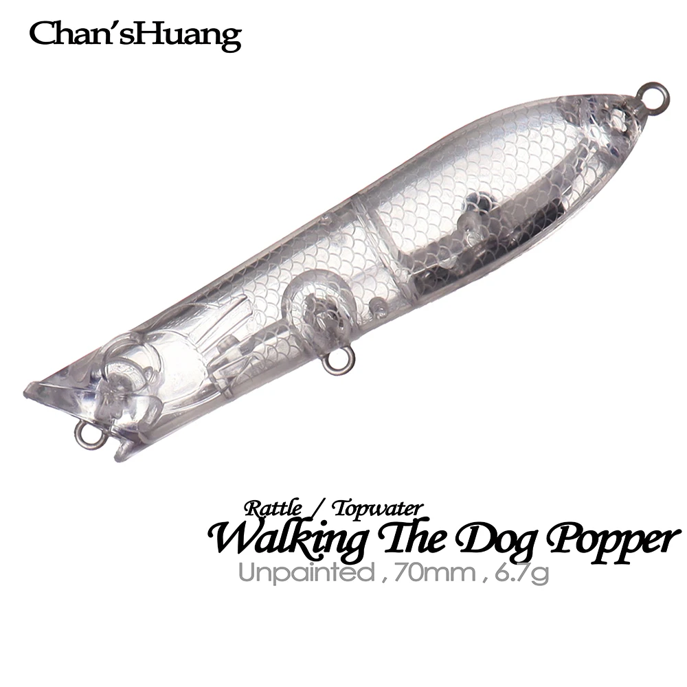 Chan'Shuang, 20 Uds., cebo de pesca en blanco sin pintar, 7cm/6,7g, Popper para caminar al perro, lápiz flotante, sonajero, señuelos de pesca artificiales
