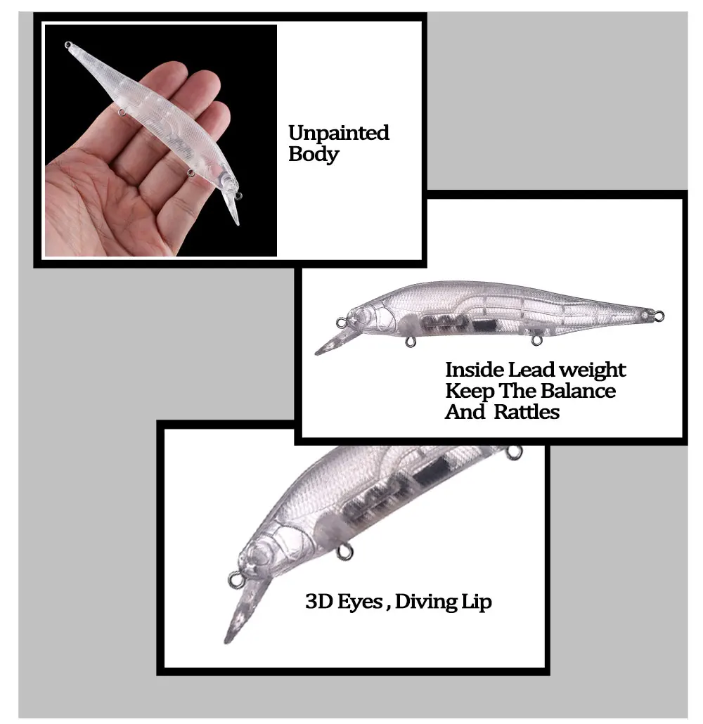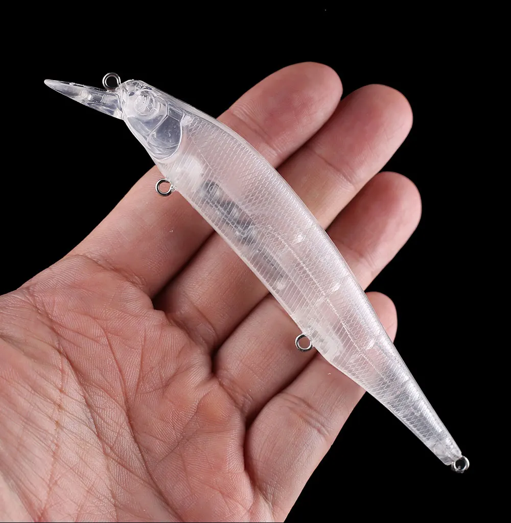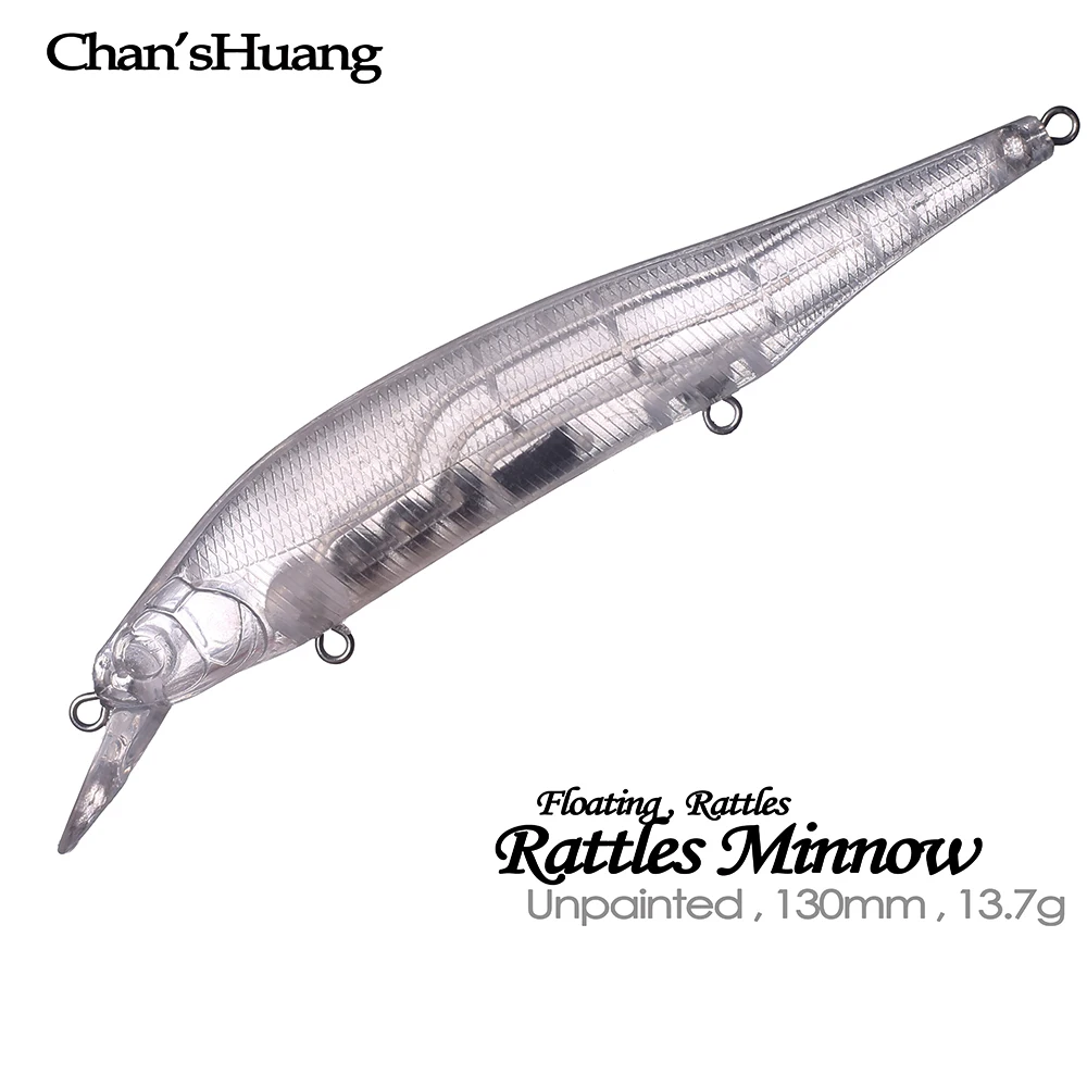 Chan'sHuang, 20 piezas, cebo transparente en blanco sin pintar, 13cm, 13,7g, sonajeros flotantes, pececillo, bricolaje, hecho a mano, aparejos de señuelo de pesca Artificial