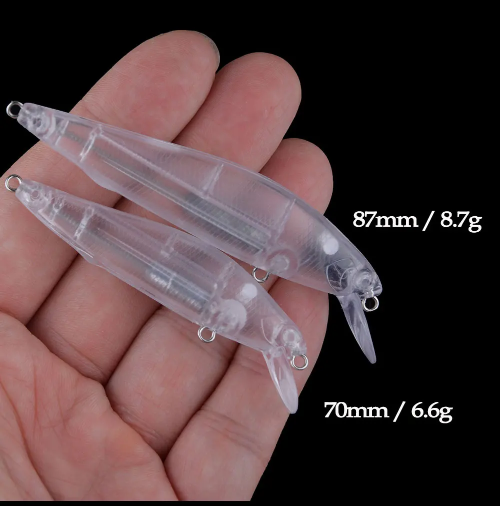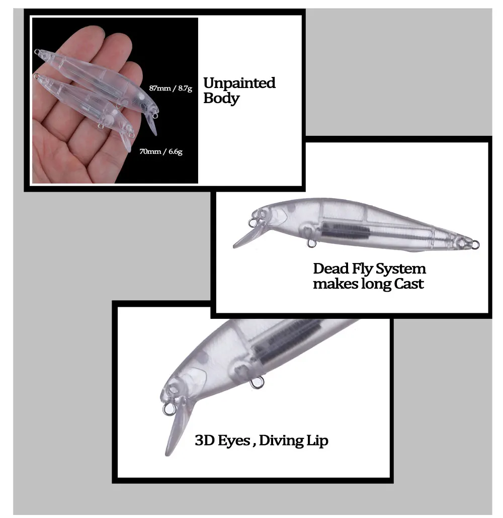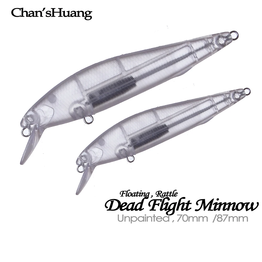 Chan'sHuang 20 piezas sin pintar en blanco 70mm/87mm pececillo de vuelo muerto DIY señuelos hechos a mano