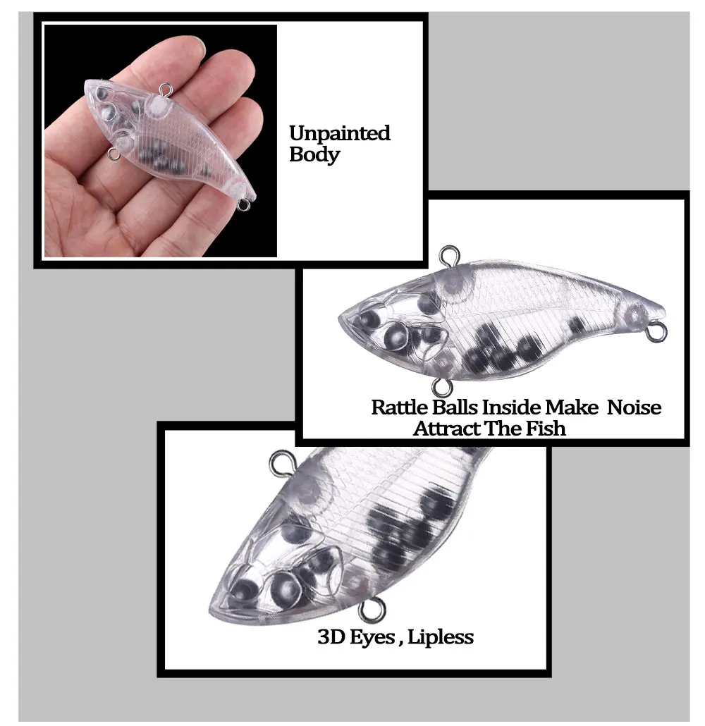 Chan’sHuang 20PCS Unpainted Blanks Bait Sinking Lipless Crankbait Rattles VIB Wobbler Vibration DIY Artificial Fishing Lures
