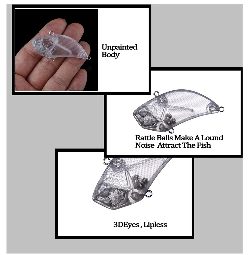 Chan'sHuang 20 piezas Señuelos de pesca en blanco sin pintar 6cm 13g sonajero VIB hundimiento vibración DIY hecho a mano cebo de pesca Artificial
