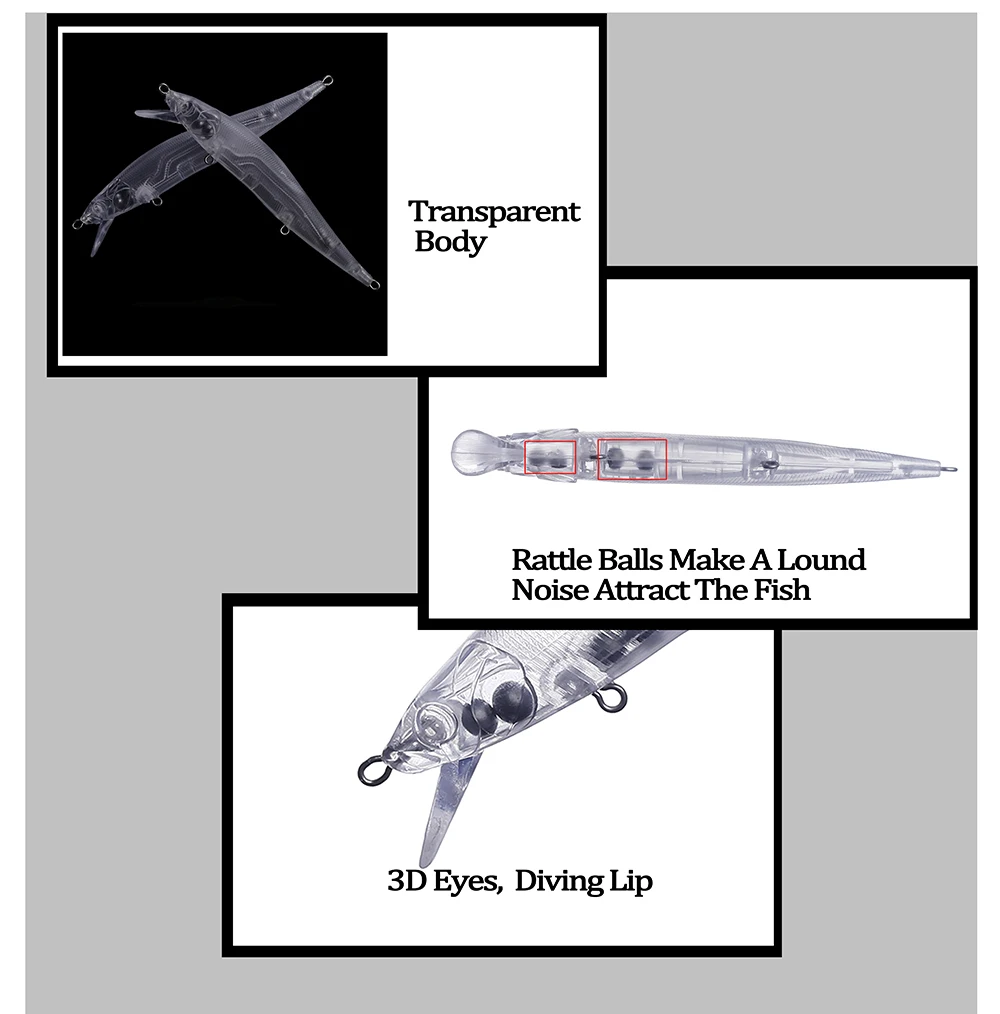 Chan'sHuang 20 uds cebo en blanco sin pintar sonajero flotante labio de buceo Wobblers Minnow Artificial DIY señuelo de pesca hecho a mano