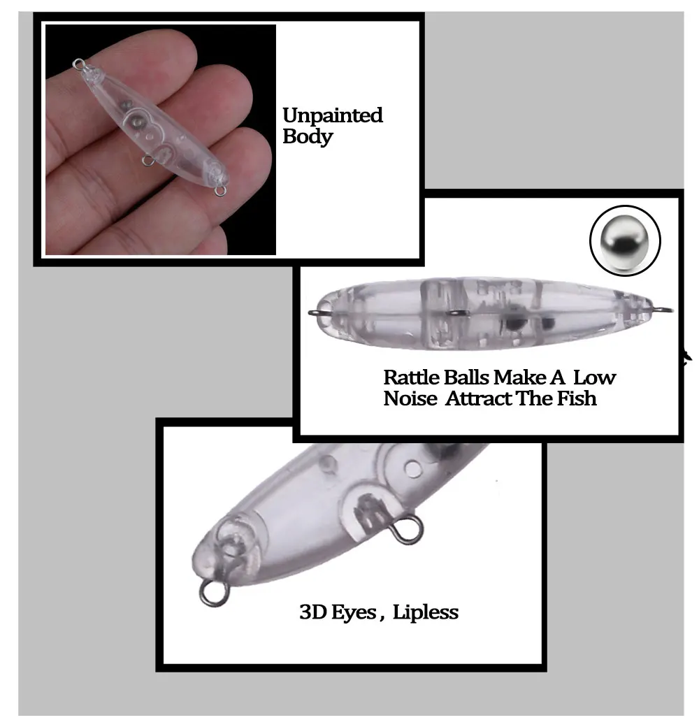 Chan'sHuang 30 Uds cebo en blanco sin pintar 4,5 cm 2,7g Mini sonajero de lápiz flotante caminando el perro DIY Señuelos de pesca artificiales