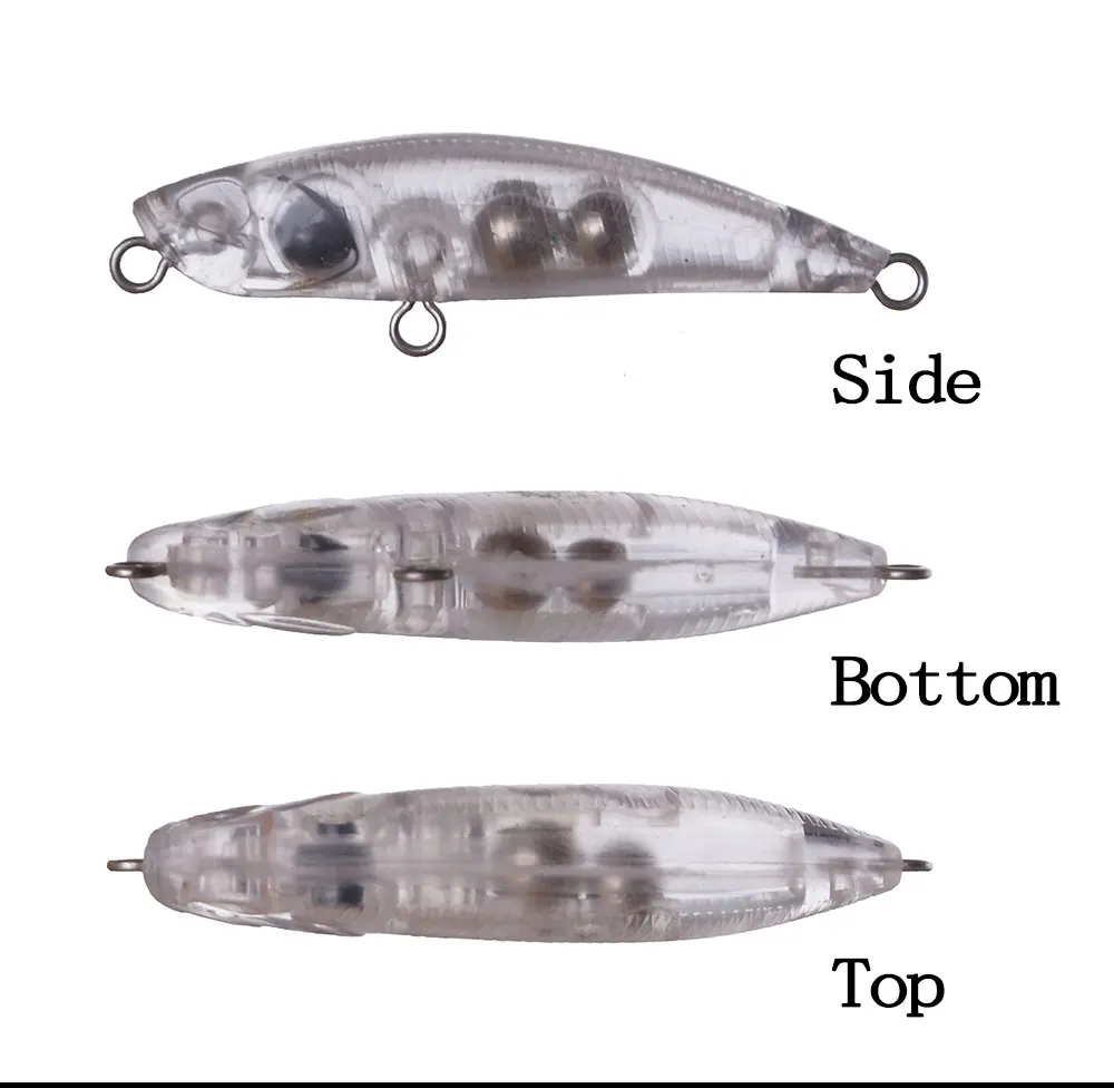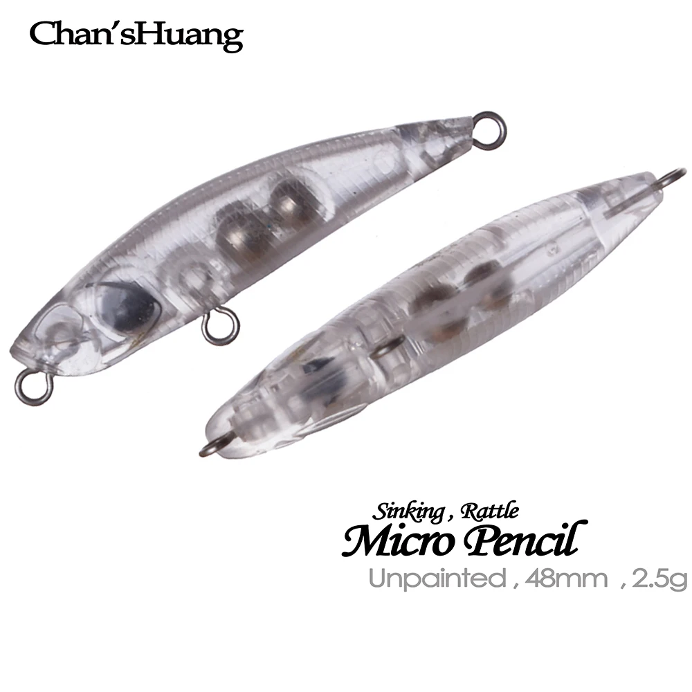 Chan'sHuang 30 Uds. Señuelos de pesca en blanco sin pintar 48mm 2,5g sonajero hundido lápiz micro DIY cebo de pesca Artificial hecho a mano