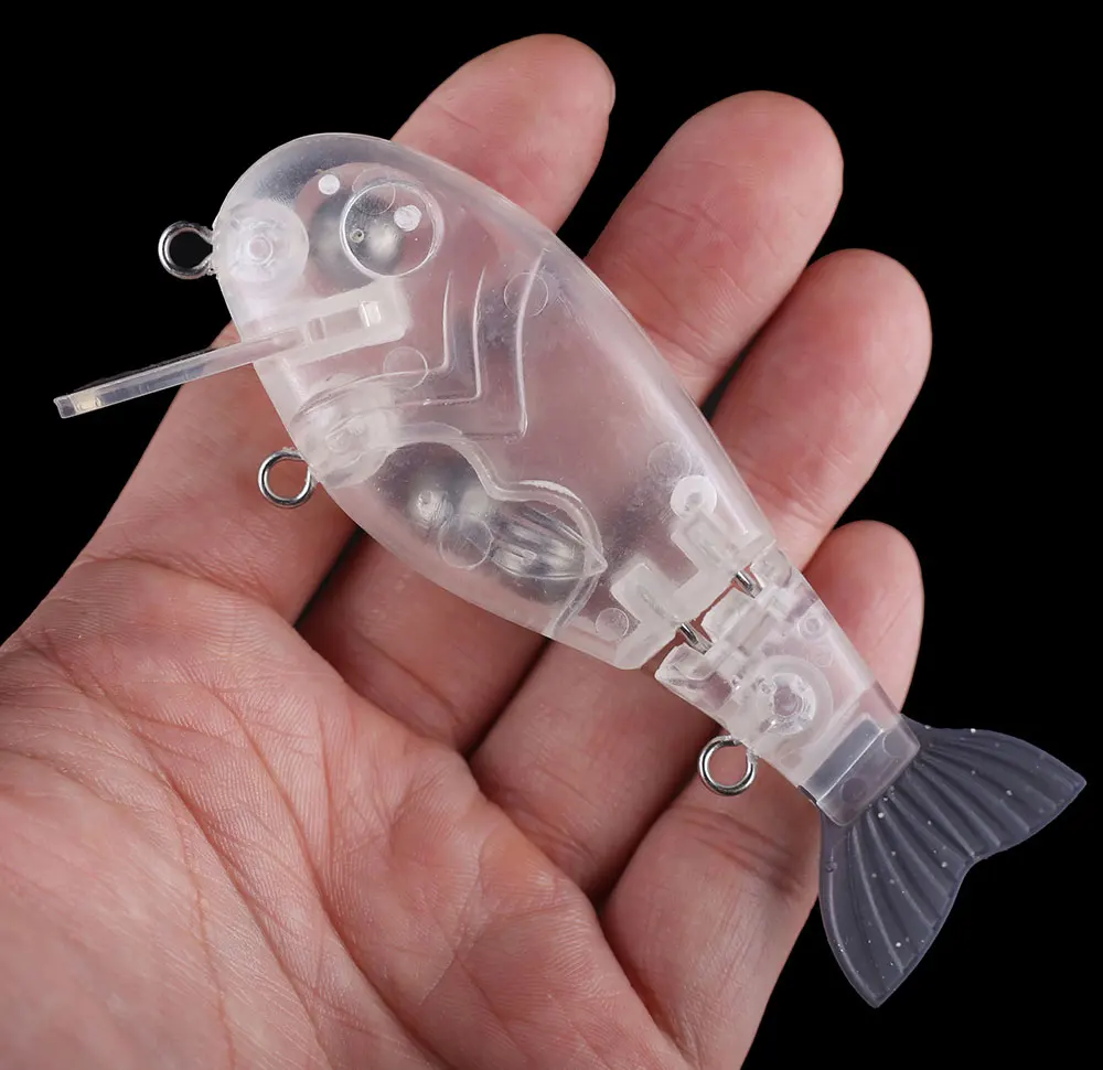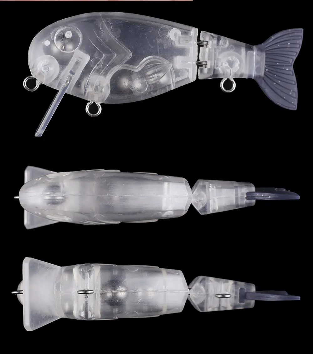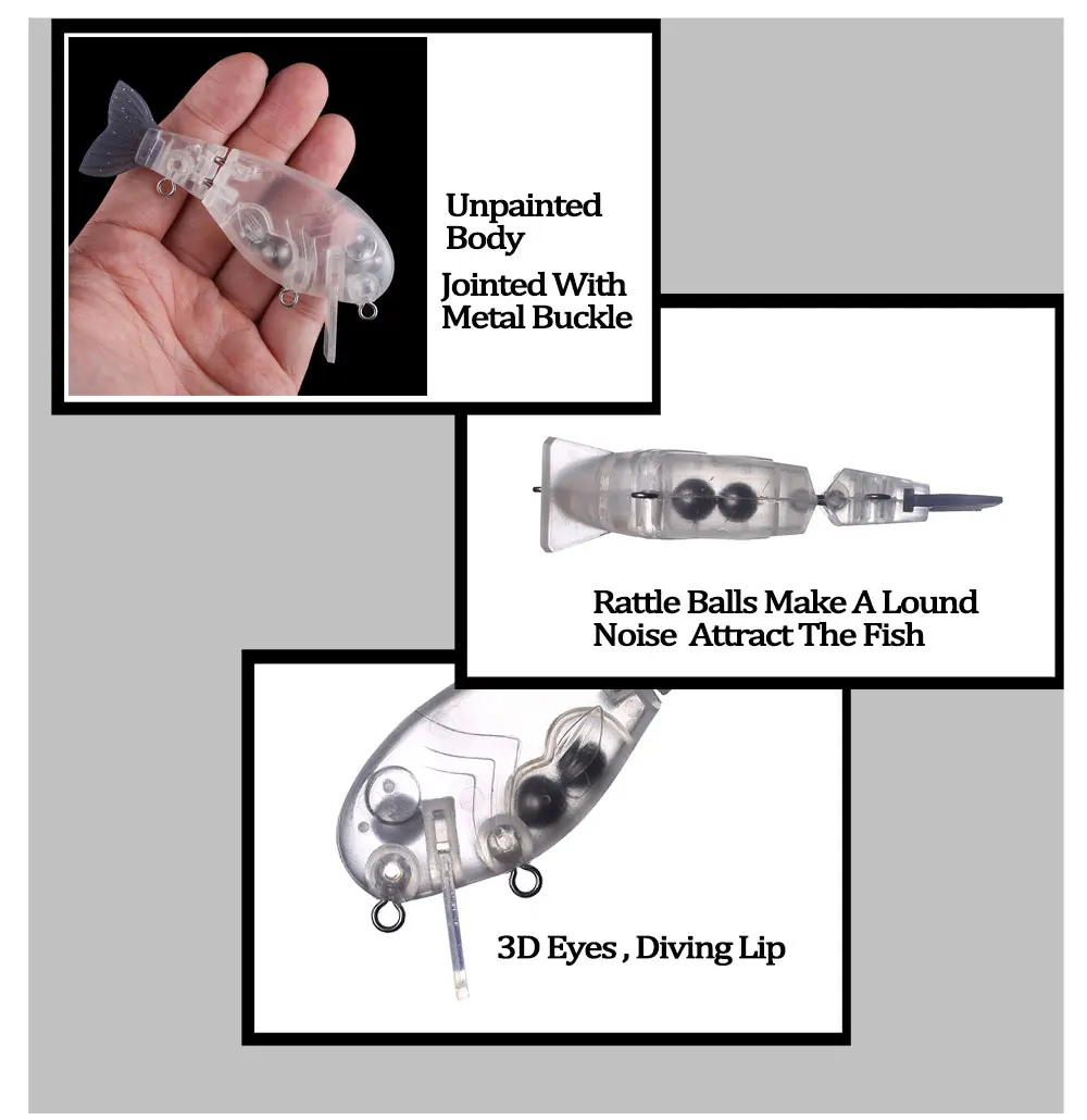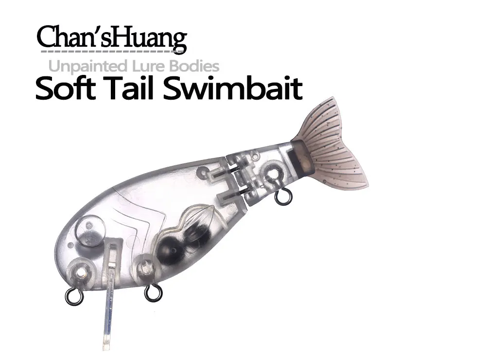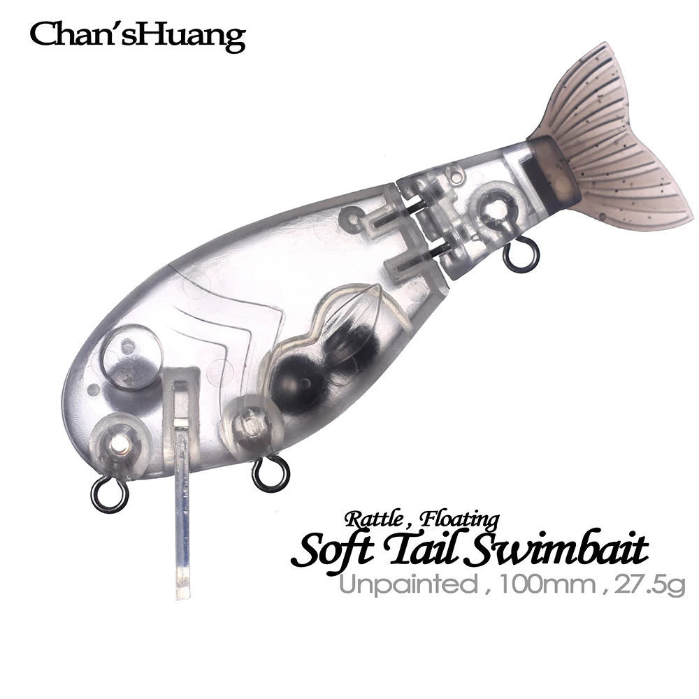 Chan'sHuang 5 uds. Señuelo de natación multiarticulado en blanco sin pintar, labio de cuclillas de cola suave, 10CM, 27,5G, flotante, 2 segmentos, señuelos hechos a mano DIY
