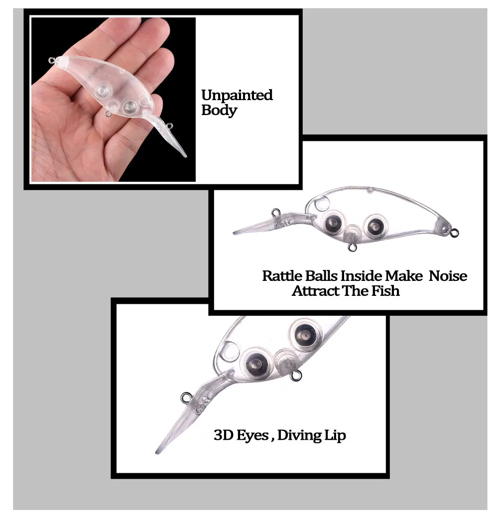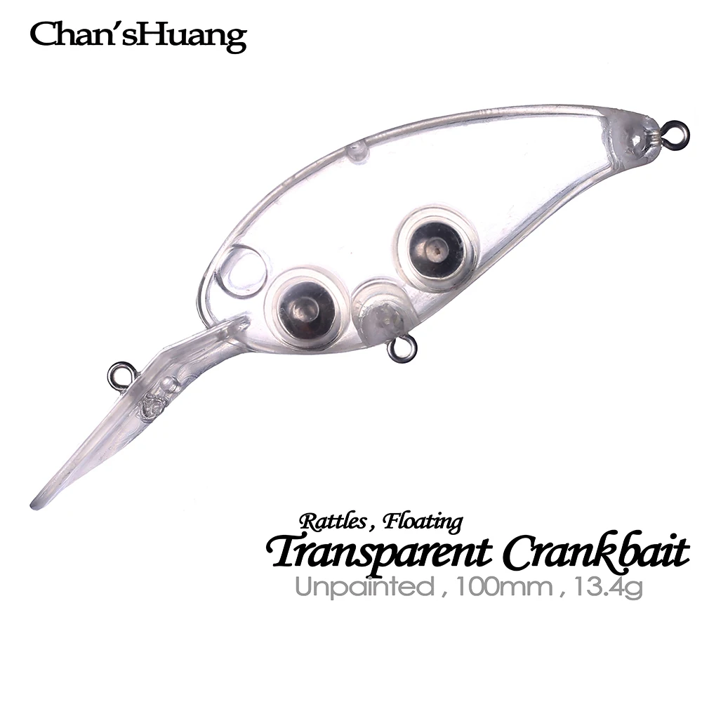 Chan'sHuang-Cebo en blanco 20 piezas sin pintar, sonajeros flotantes transparentes, Crankbait, señuelo de pesca Artificial hecho a mano, 10cm, 13,4g