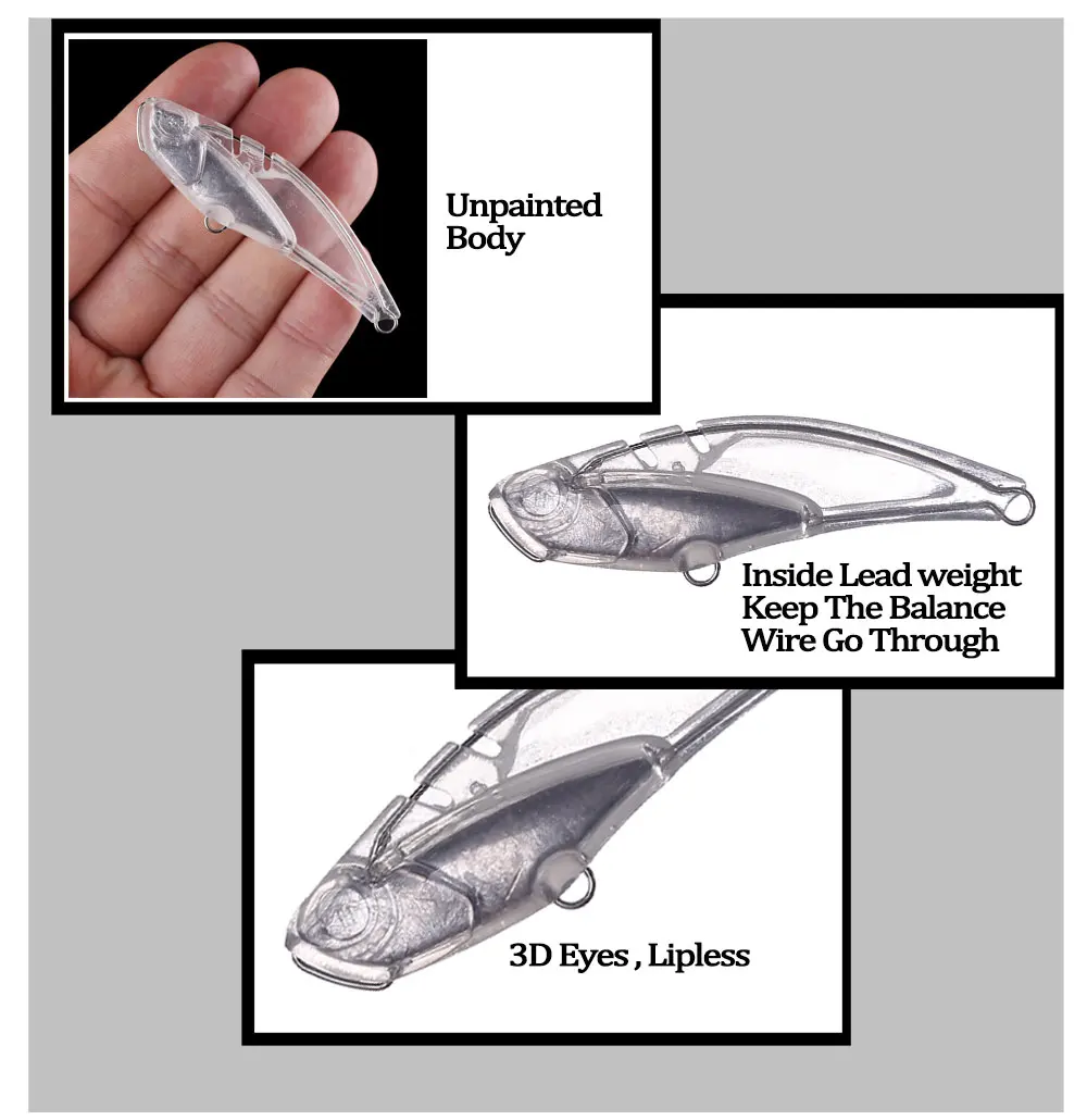 Chan'sHuang, cebo en blanco sin pintar de 10 piezas, 7cm, 18,2G, VIB, vibración de hundimiento, Crankbait sin labios, señuelo de pesca Artificial hecho a mano DIY