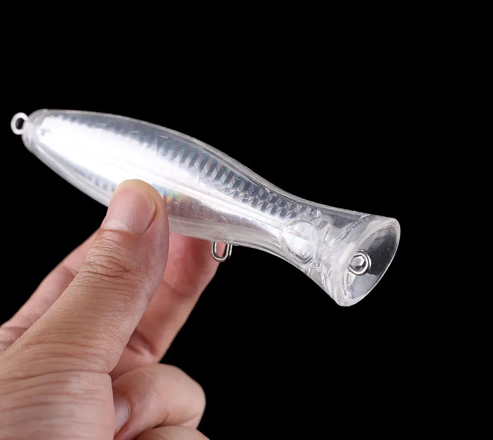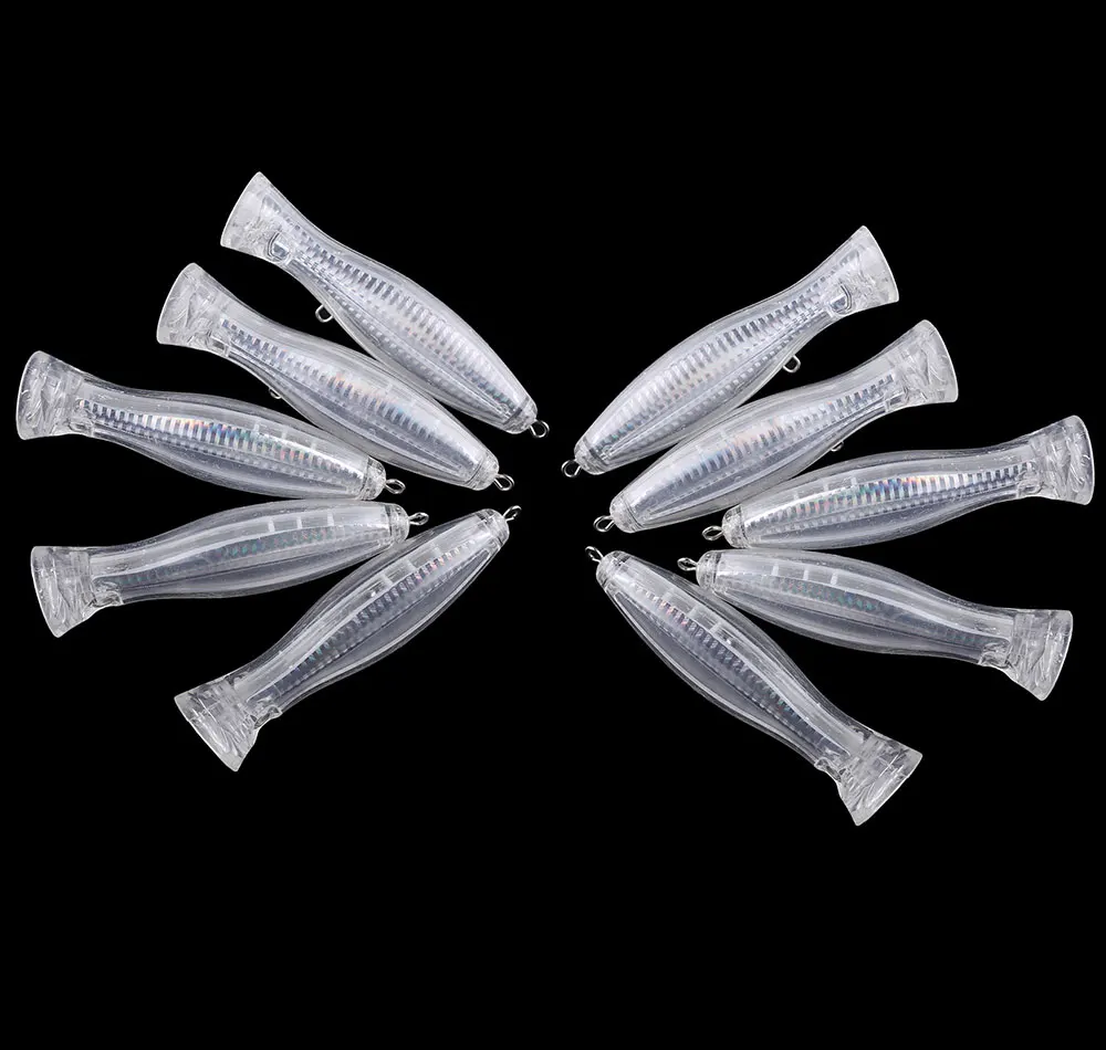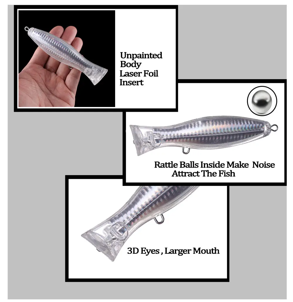 Chan'sHuang-cebo en blanco sin pintar, 10 Uds., 12cm, 37g, lámina superior, sonajeros holográficos interiores, Popper, señuelo de pesca Artificial DIY
