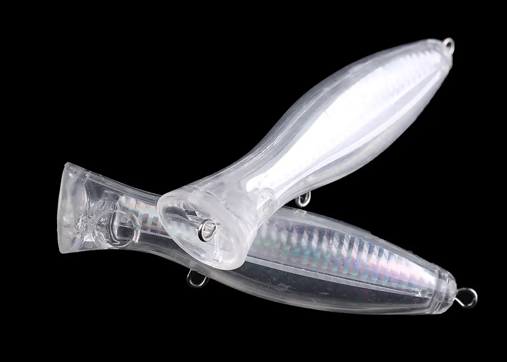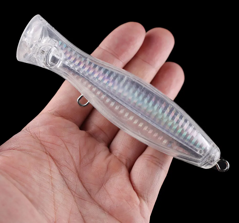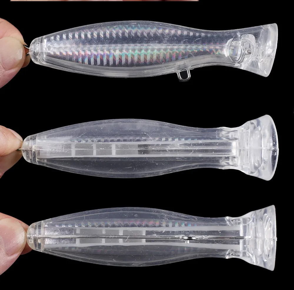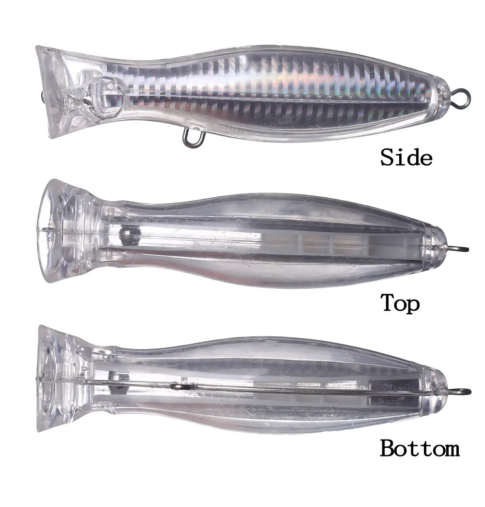 Chan'sHuang-cebo en blanco sin pintar, 10 Uds., 12cm, 37g, lámina superior, sonajeros holográficos interiores, Popper, señuelo de pesca Artificial DIY