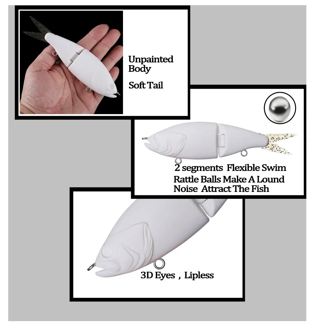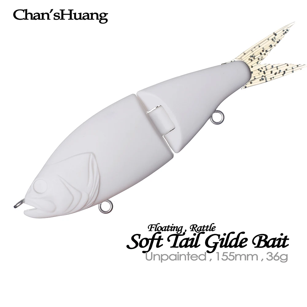 Chan'sHuang-Cebo en blanco sin pintar, 3 piezas, 15,5 cm, 36g, sonajero flotante, cola suave, cebo dorado, Swimbait, señuelo de pesca Artificial hecho a mano