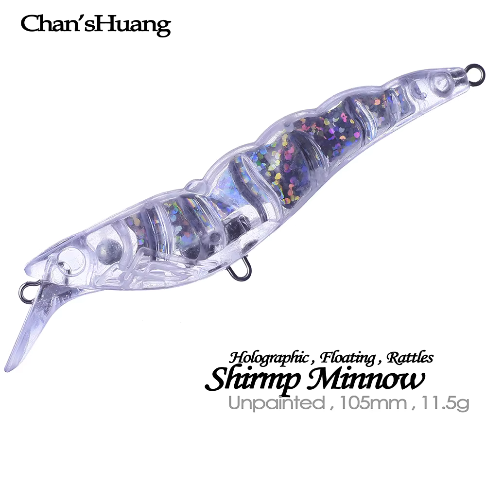 Chan'sHuang, cebo en blanco sin pintar, 105mm, 11,5g, lámina holográfica, Shirmp Minnow, aparejos de señuelo de pesca artificiales hechos a mano DIY