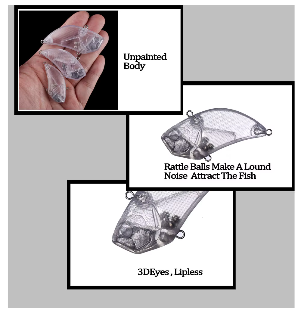 Chan'sHuang cebo en blanco sin pintar, 50/60/70mm, sonajero, hundimiento, vibración, Crankbait sin labios, señuelo de pesca Artificial hecho a mano