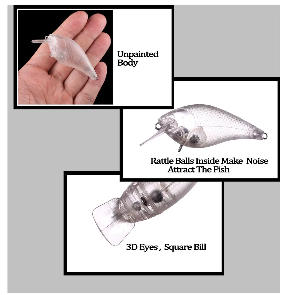 Chan'sHuang, cebo en blanco sin pintar, 7cm, 7,9G, sonajeros flotantes, pico cuadrado, Crankbait, señuelo de pesca Artificial hecho a mano DIY